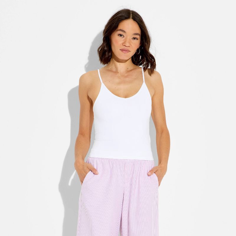ButterBliss cami from Wild Fable™ in a fitted silhouette. Crafted from recycled polyester interlock fabric with spandex for flexible, comfortable wear that moves with you. Features a V-neckline and ad…
