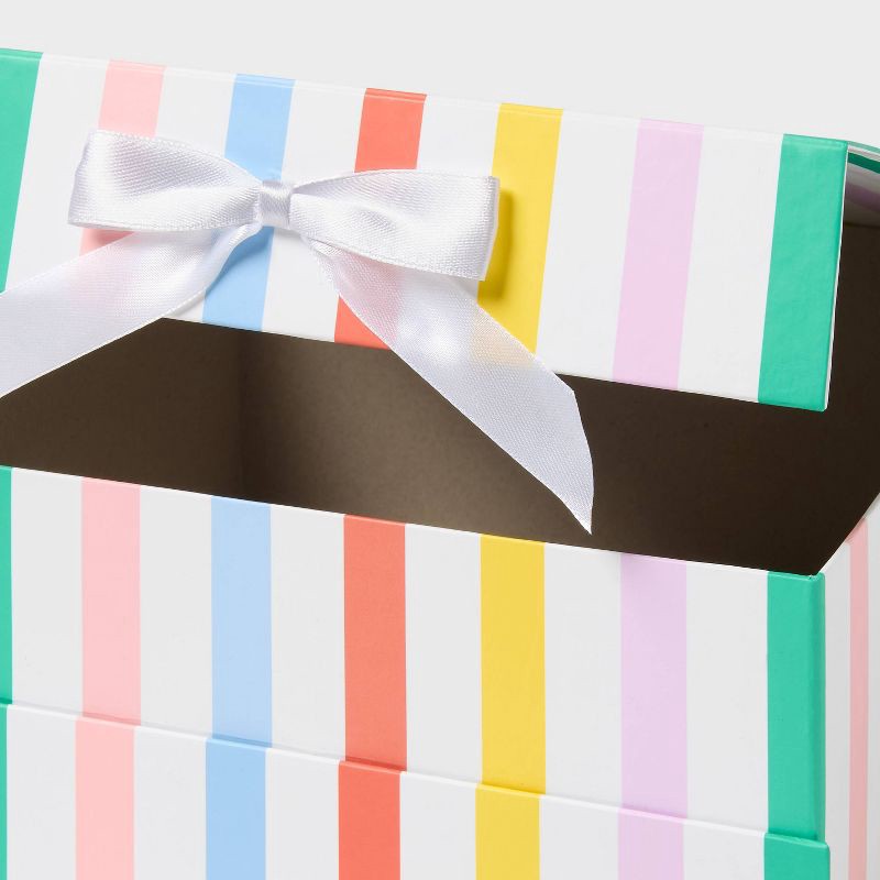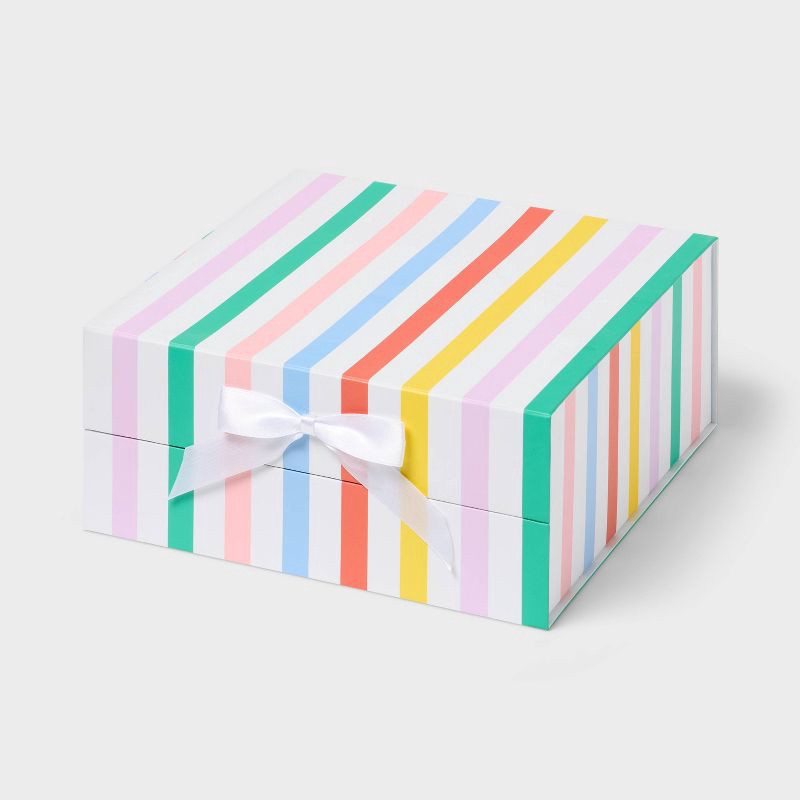 10"x10"x4" Square Gift Box with Bow Vertical Multi Stripe - Spritz™