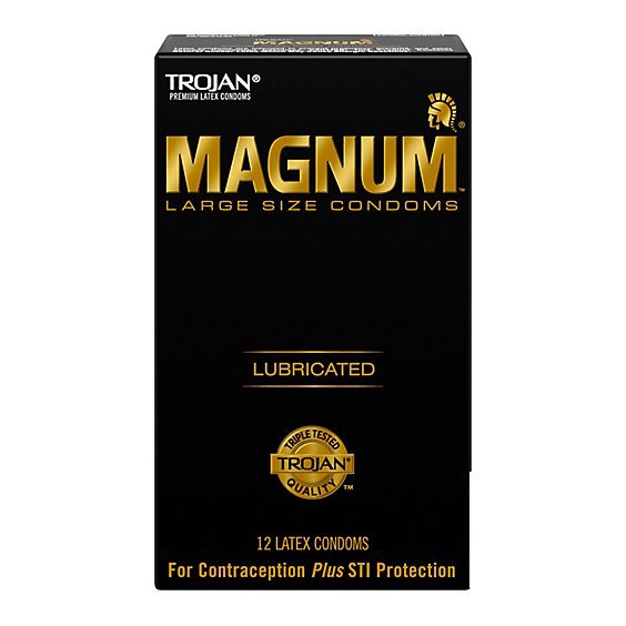 Trojan Magnum Large Size Condoms. The Gold Standard in comfort and protection. Accept No Substitutes. These condoms feature a larger than standard design and a tapered base that stays securely in plac…
