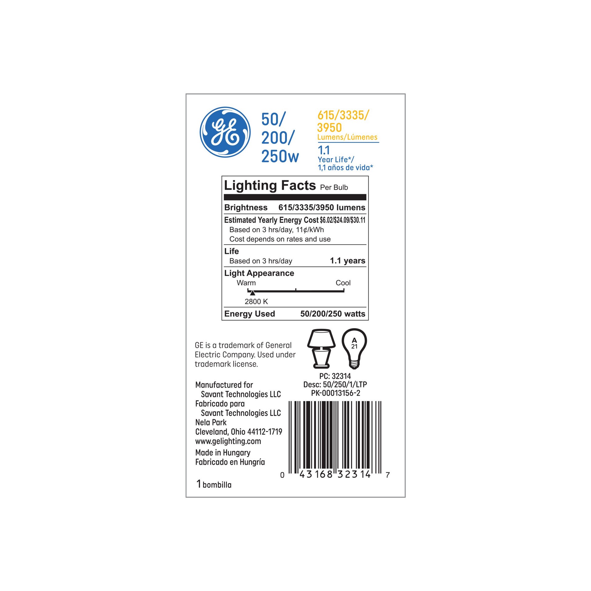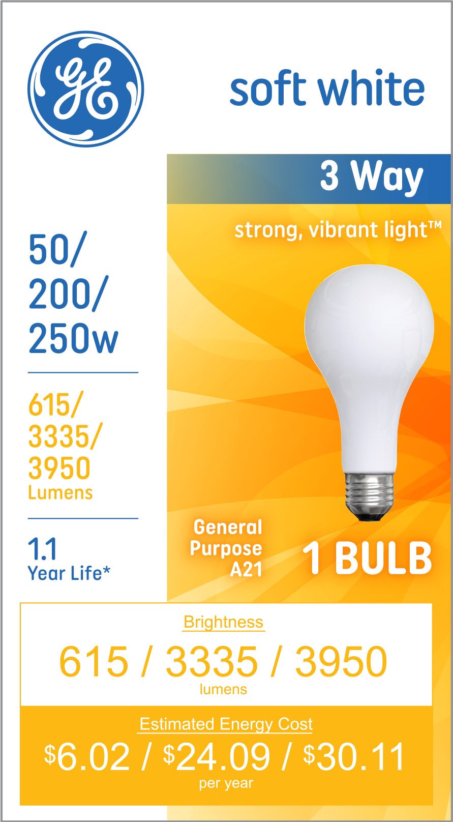 GE 250 -Watt EQ A21 Soft white Medium screw base E26 Dimmable Incandescent General purpose Light Bulb