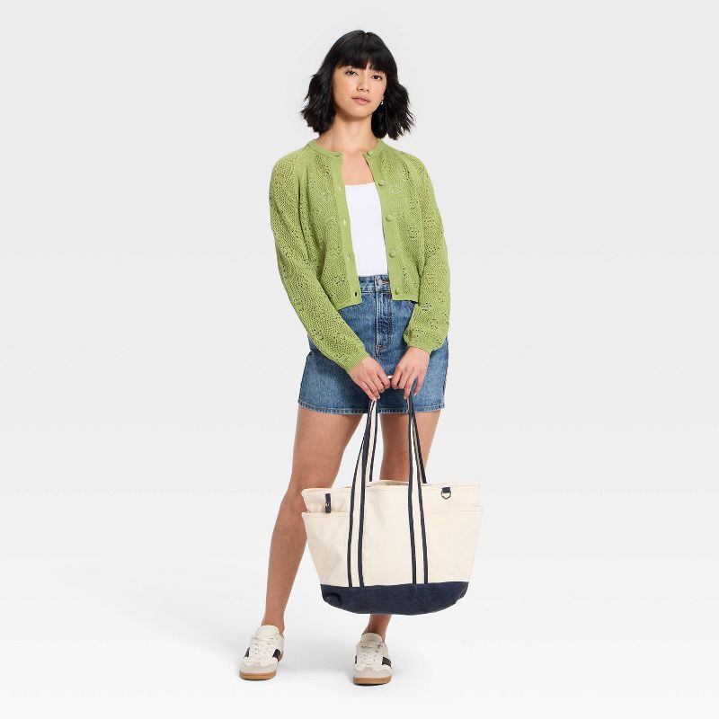 Women's Long Sleeve Openwork Cardigan - Universal Thread™ Olive Green S