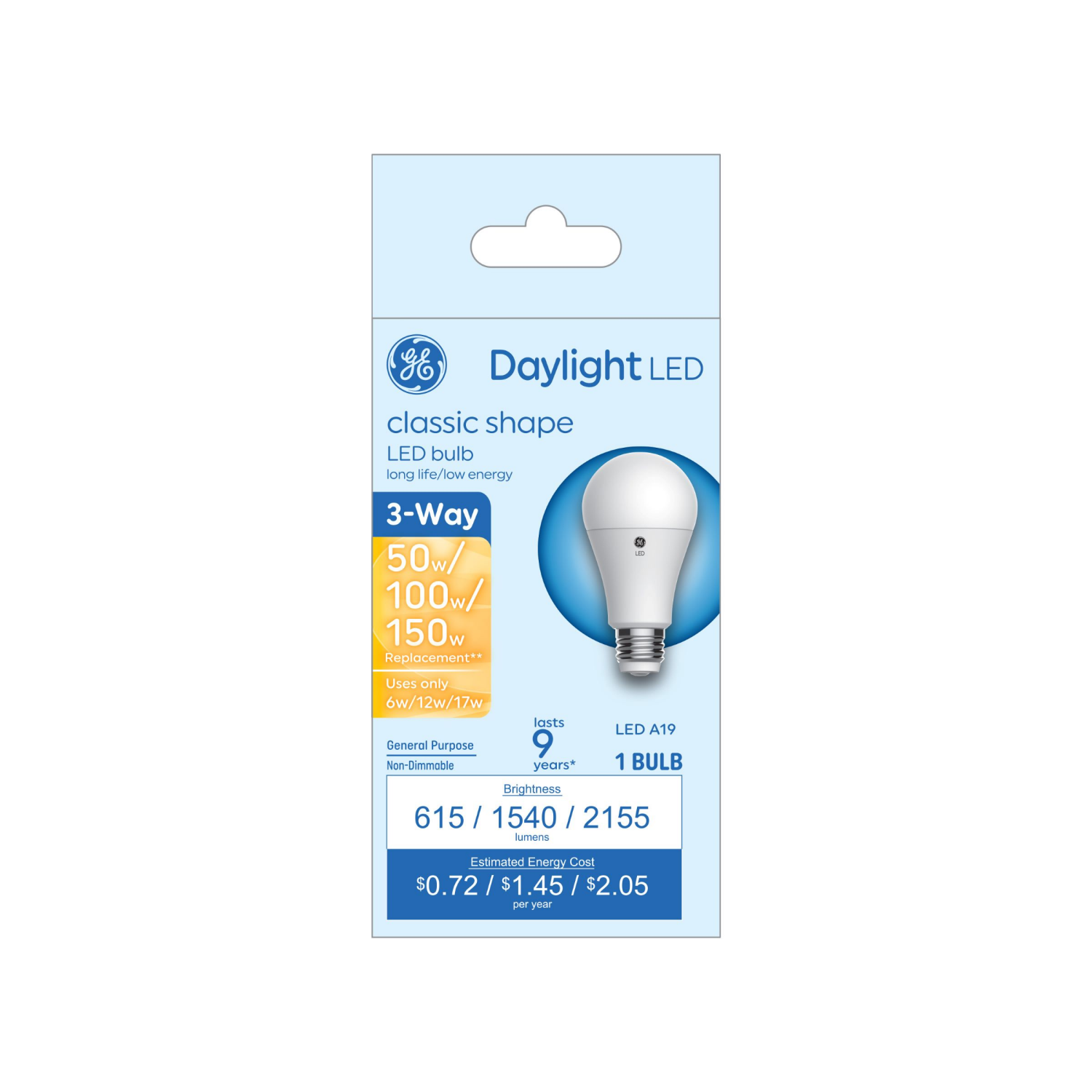 GE 3-Way Classic Shape Daylight LED Light Bulb 1 ea
