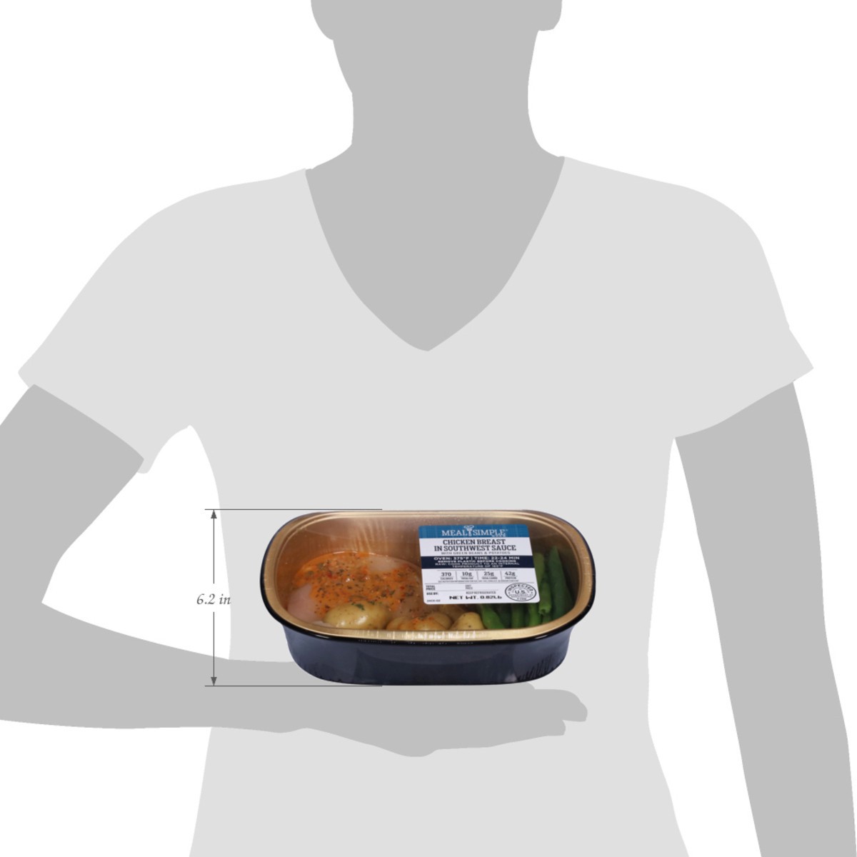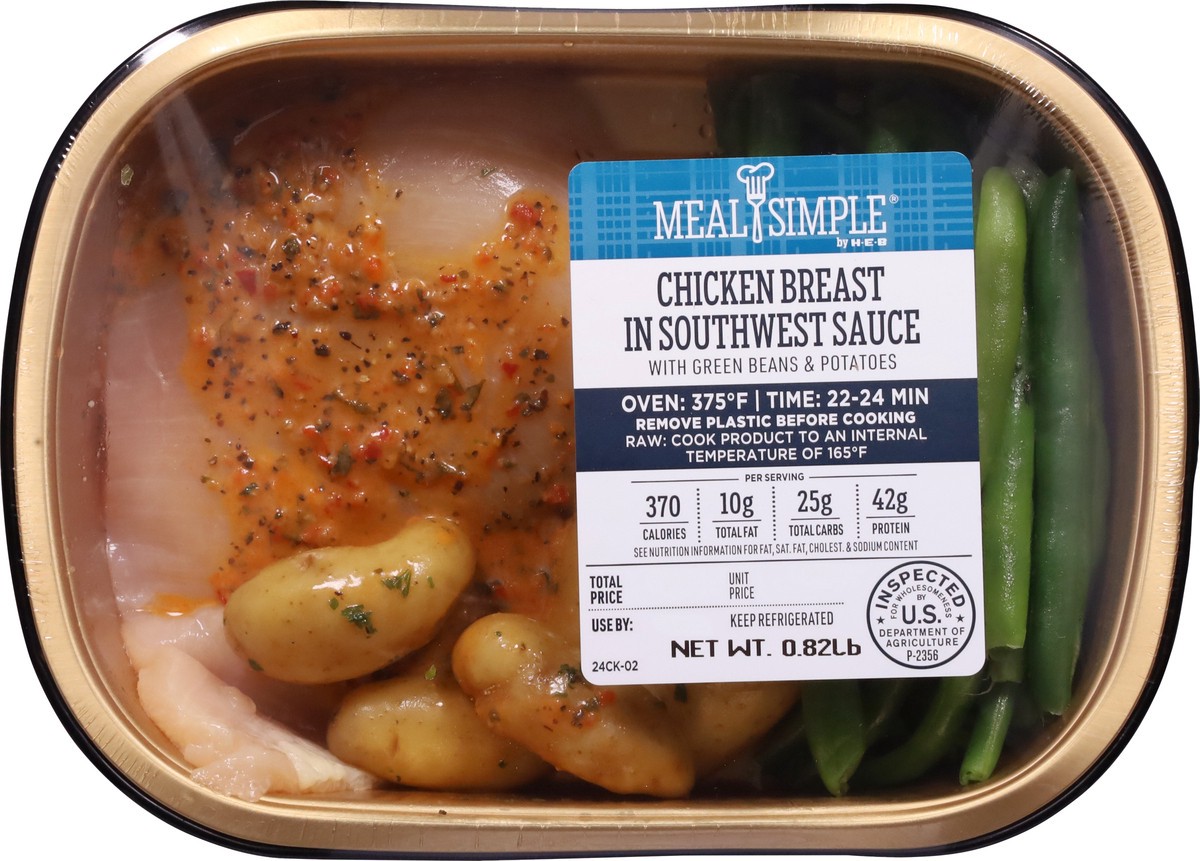 From Meal Simple by H-E-B, this boneless skinless natural* chicken breast is topped with a lively Southwest-style sauce. On the side, there's seasoned green beans and baby potatoes. Just pop the tray …