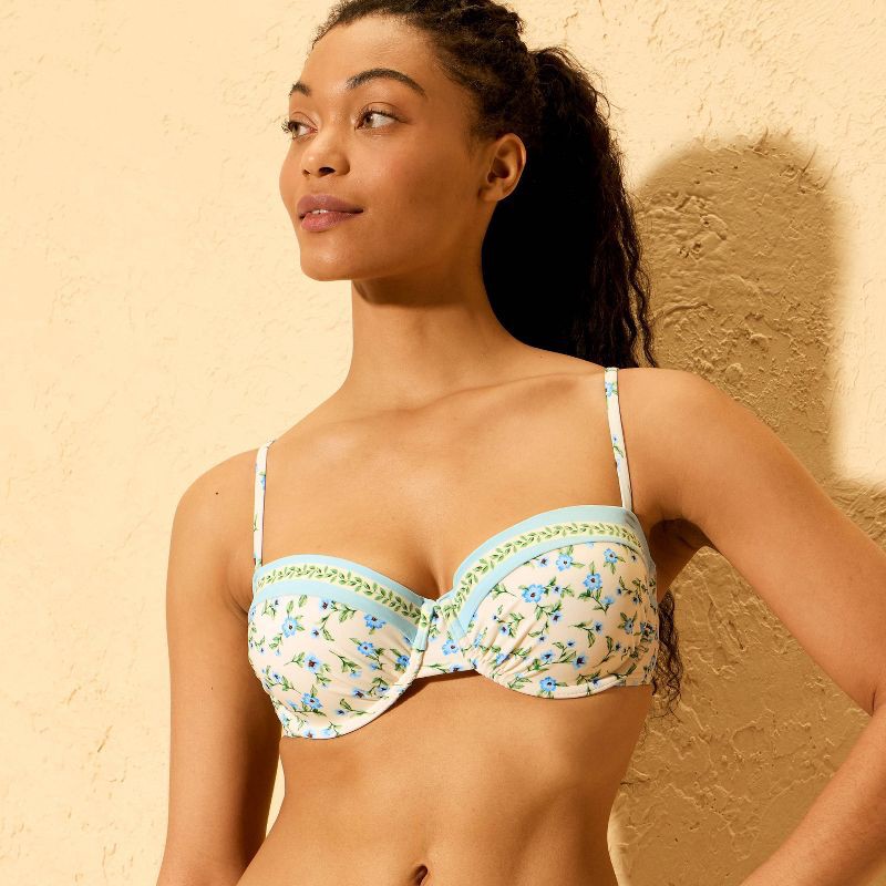 Women's Floral Print Molded Underwire Bikini Top - Shade & Shore™ Cream 34D