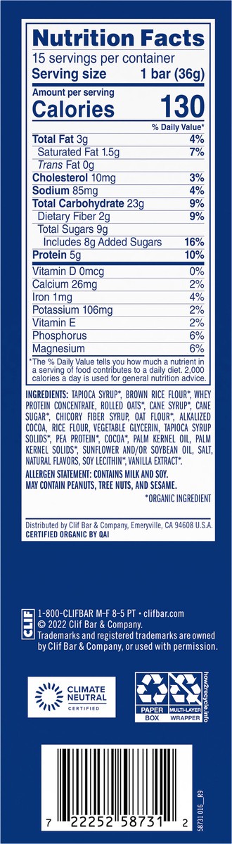 Tapioca Syrup (Organic Ingredient), Brown Rice Flour (Organic Ingredient), Whey Protein Concentrate, Rolled Oats (Organic Ingredient), Cane Syrup (Organic Ingredient), Cane Sugar (Organic Ingredient),…