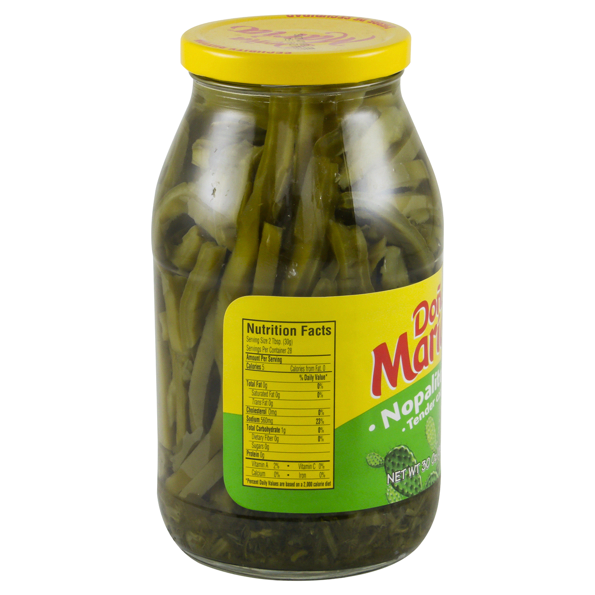Tender Cactus, Water, Onions, Cilantro, Serrano Pepper, Iodized Salt, Distilled Vinegar and 0.1% of Sodium Benzoate (as preservative).