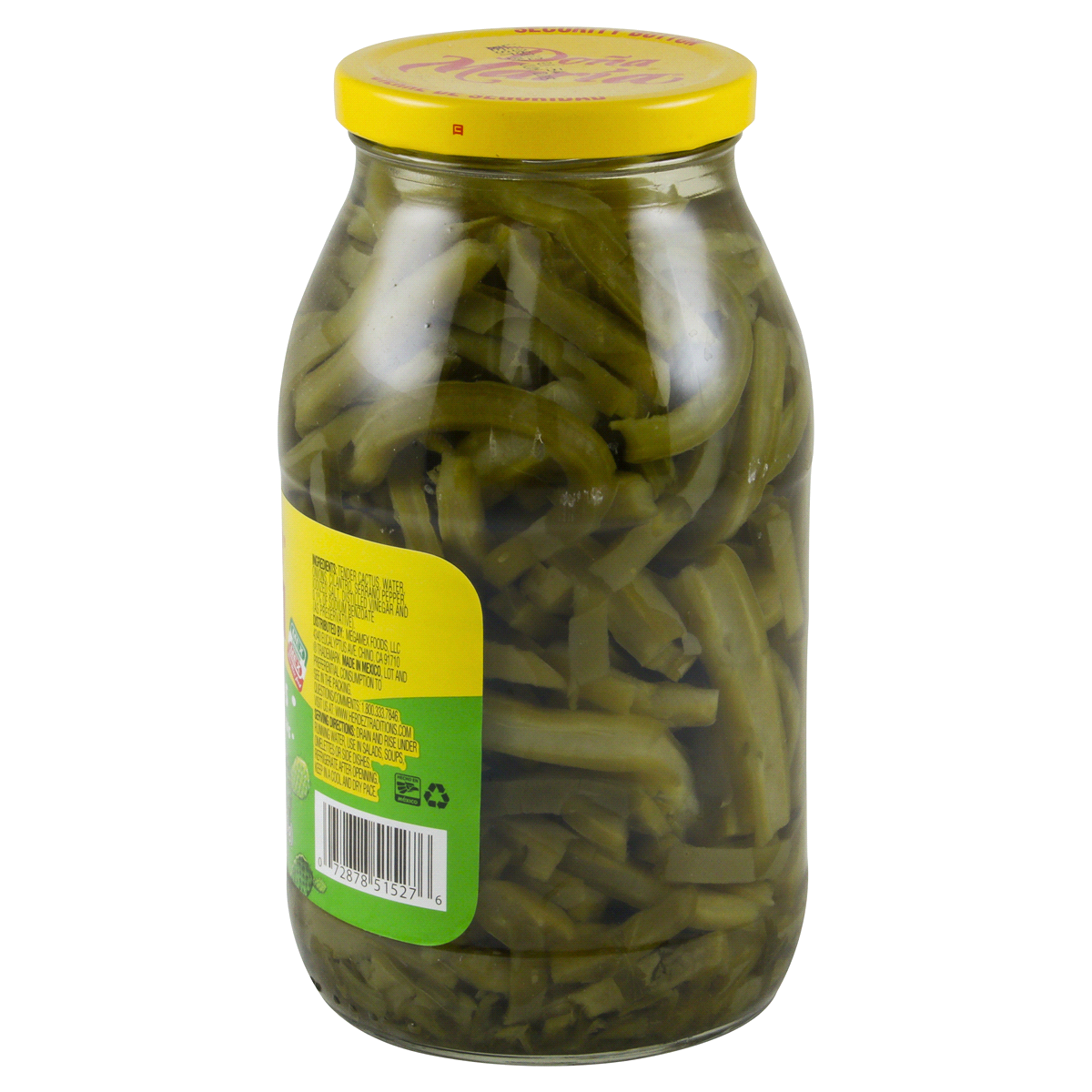 Tender Cactus, Water, Onions, Cilantro, Serrano Pepper, Iodized Salt, Distilled Vinegar and 0.1% of Sodium Benzoate (as preservative).