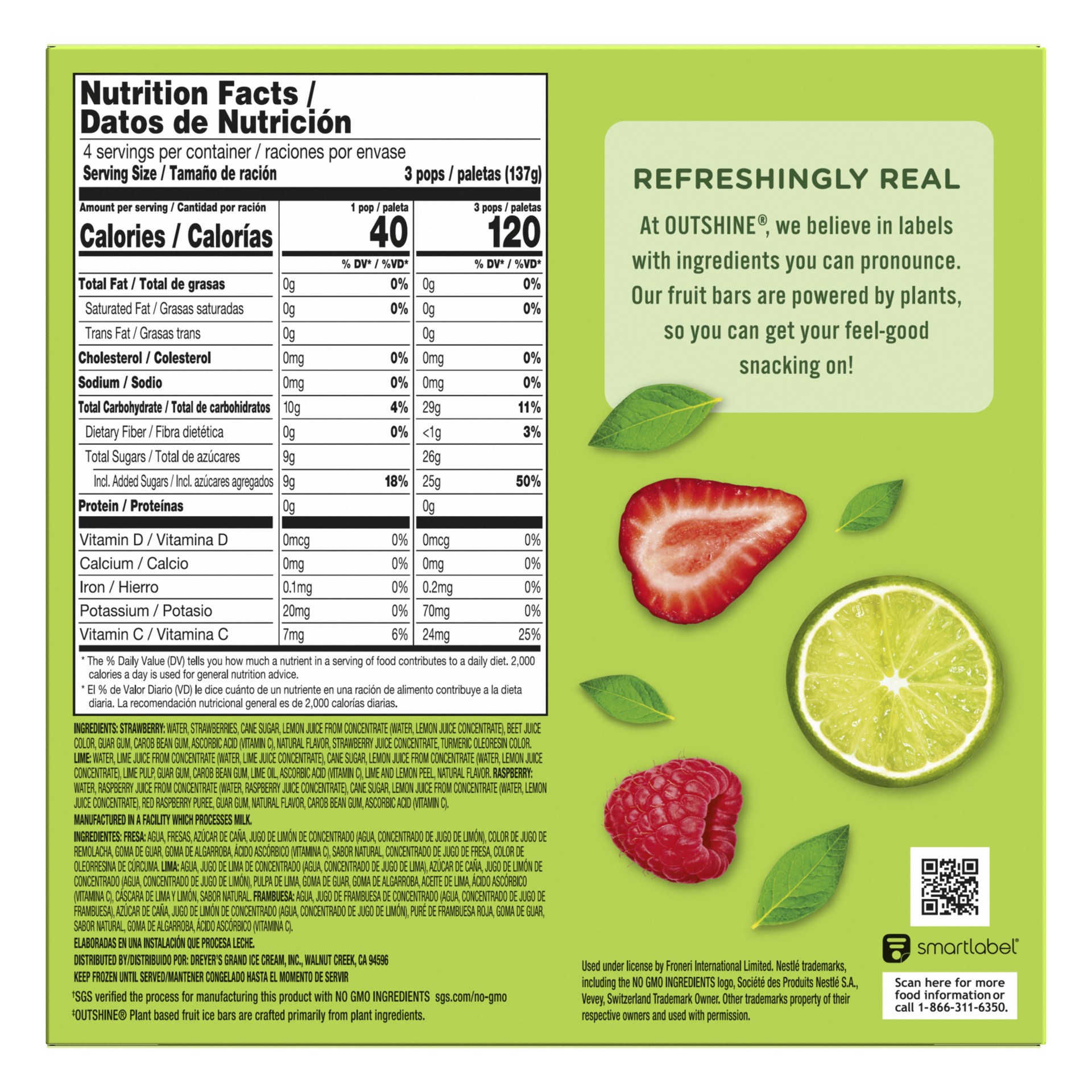 Enjoy the bold, deliciously fun taste of Outshine Strawberry, Lime, and Raspberry Frozen Fruit Pops. Made with real fruit or fruit juice, these freezer pops bring the vibrancy of strawberry, raspberry…