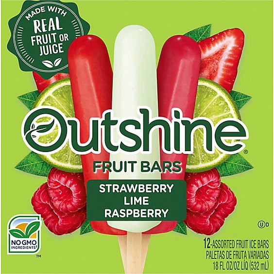 Outshine Strawberry Lime And Raspberry Frozen Fruit Pops Variety Pack - 12 Count