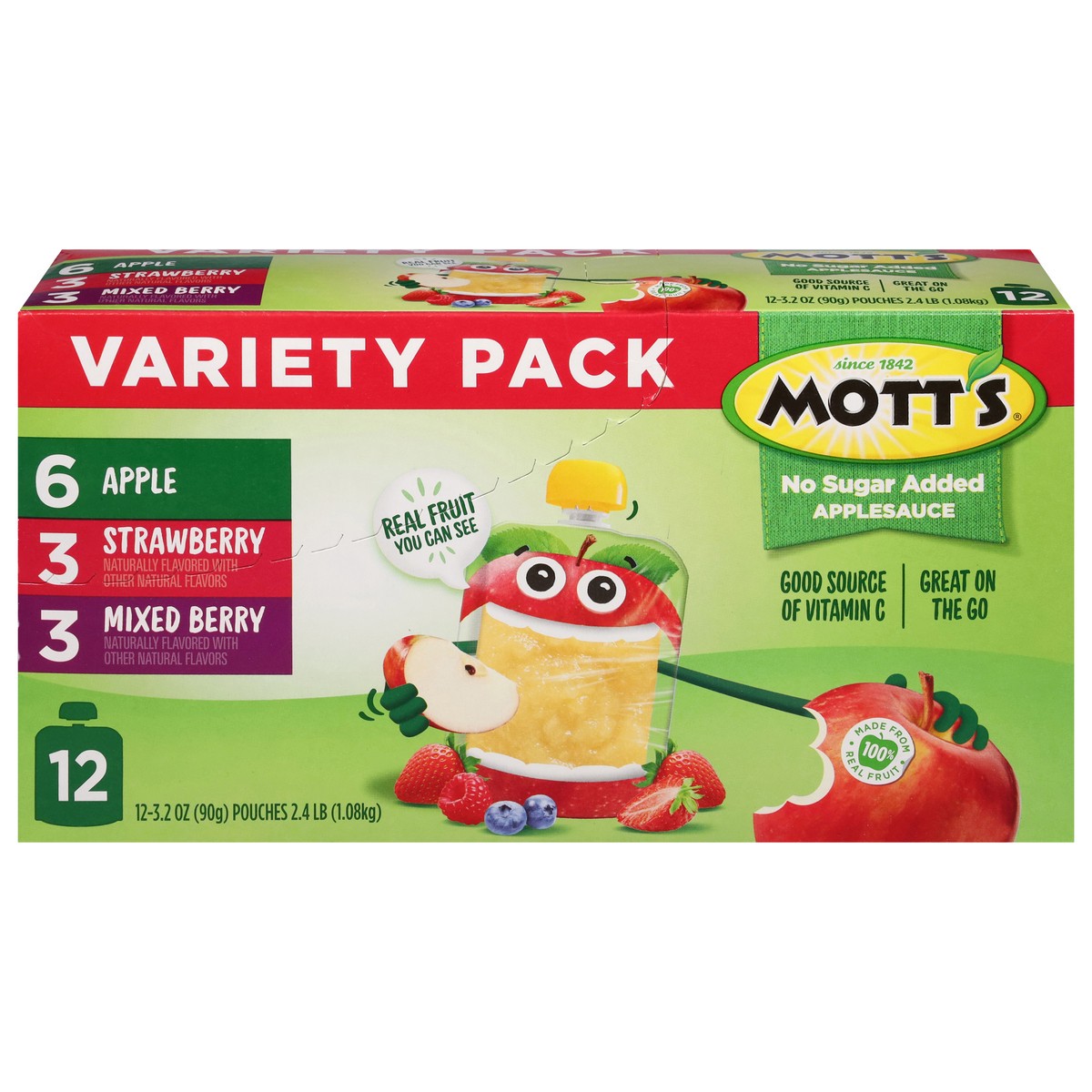 - REAL FRUIT: Mott's No Sugar Added Applesauce Variety Pack pouches are made with 100% Real Fruit with no sugar added.