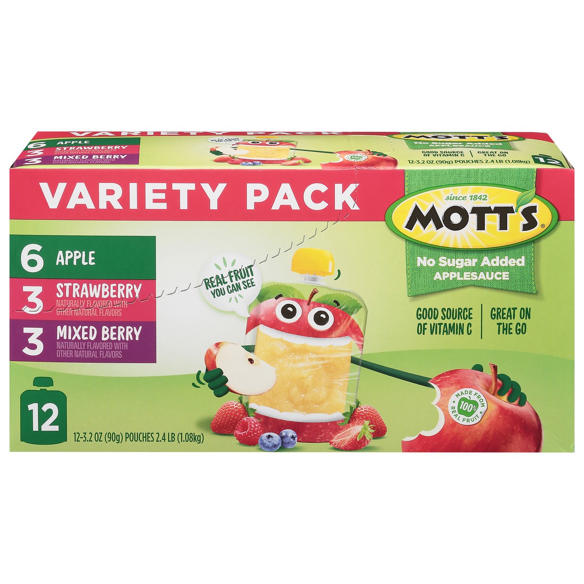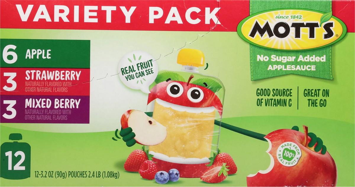 - Mott's No Sugar Added Applesauce Variety Pack brings the best of the orchard to your household to help families enjoy delicious fruit goodness every day.