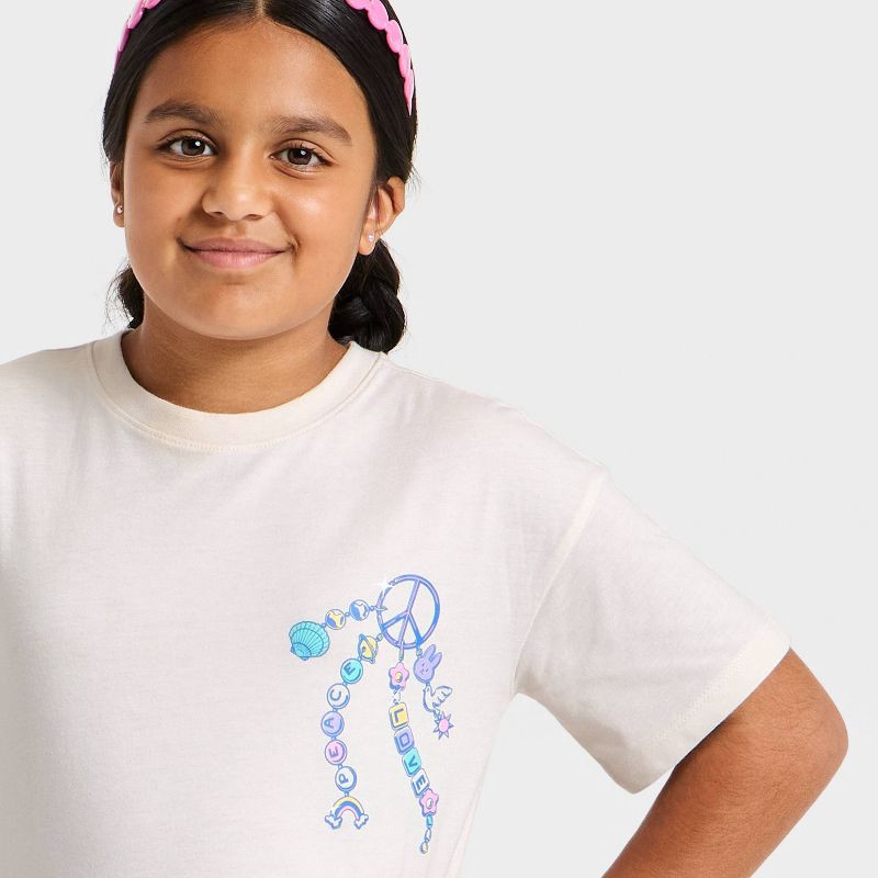 Girls' Short Sleeve Oversized 'Charm' Graphic T-Shirt - Cat & Jack™ Cream M
