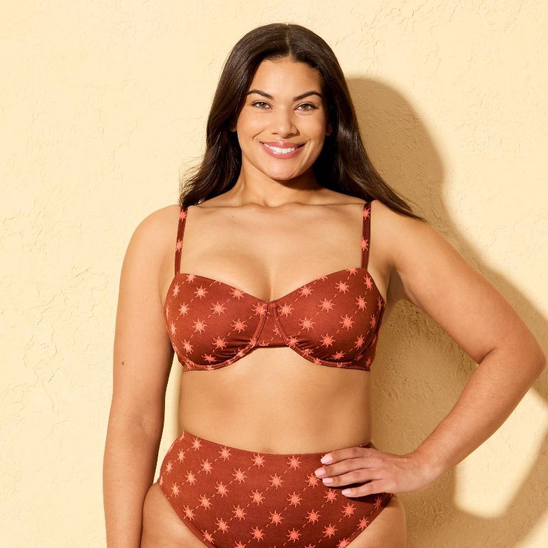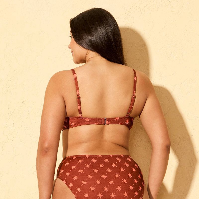 Switch up your summer style with this Solar Jacquard Underwire Bikini Top from Shade & Shore™. This swim top showcases a jacquard-knit brown finish adorned with light-hued sun prints for a standout lo…
