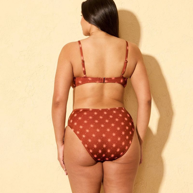 Switch up your summer style with this Solar Jacquard High-Waist Bikini Bottom from Shade & Shore™. This pull-on bikini bottom showcases a jacquard-knit brown finish adorned with light-hued sun prints …