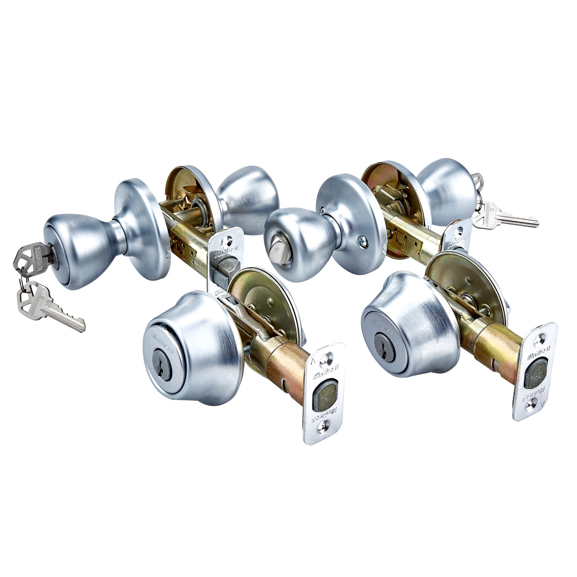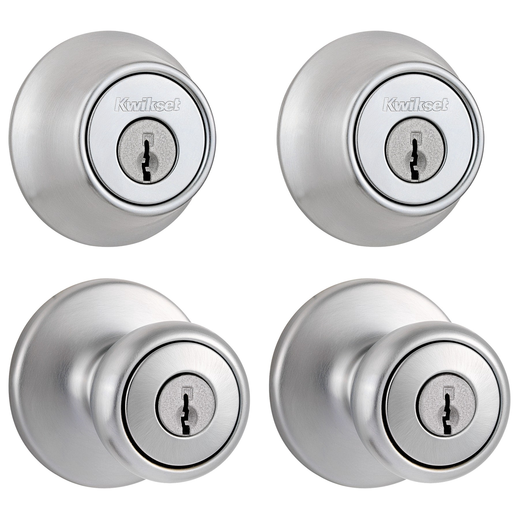 Kwikset Tylo Satin Chrome Exterior Single-Cylinder Deadbolt and Keyed Entry Door Knob 2 -Pack