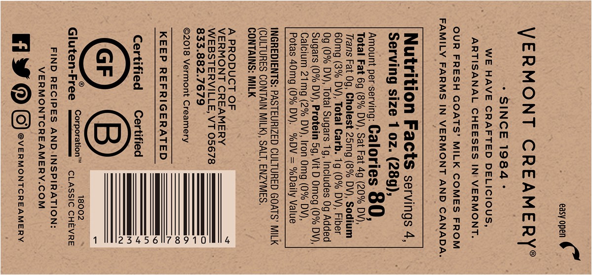 The Vermont Creamery Story begins with this mild fresh goats' milk cheese. This award-winning fresh goat cheese is distinguished by its fresh milk taste, mild flavor and smooth texture. The process st…