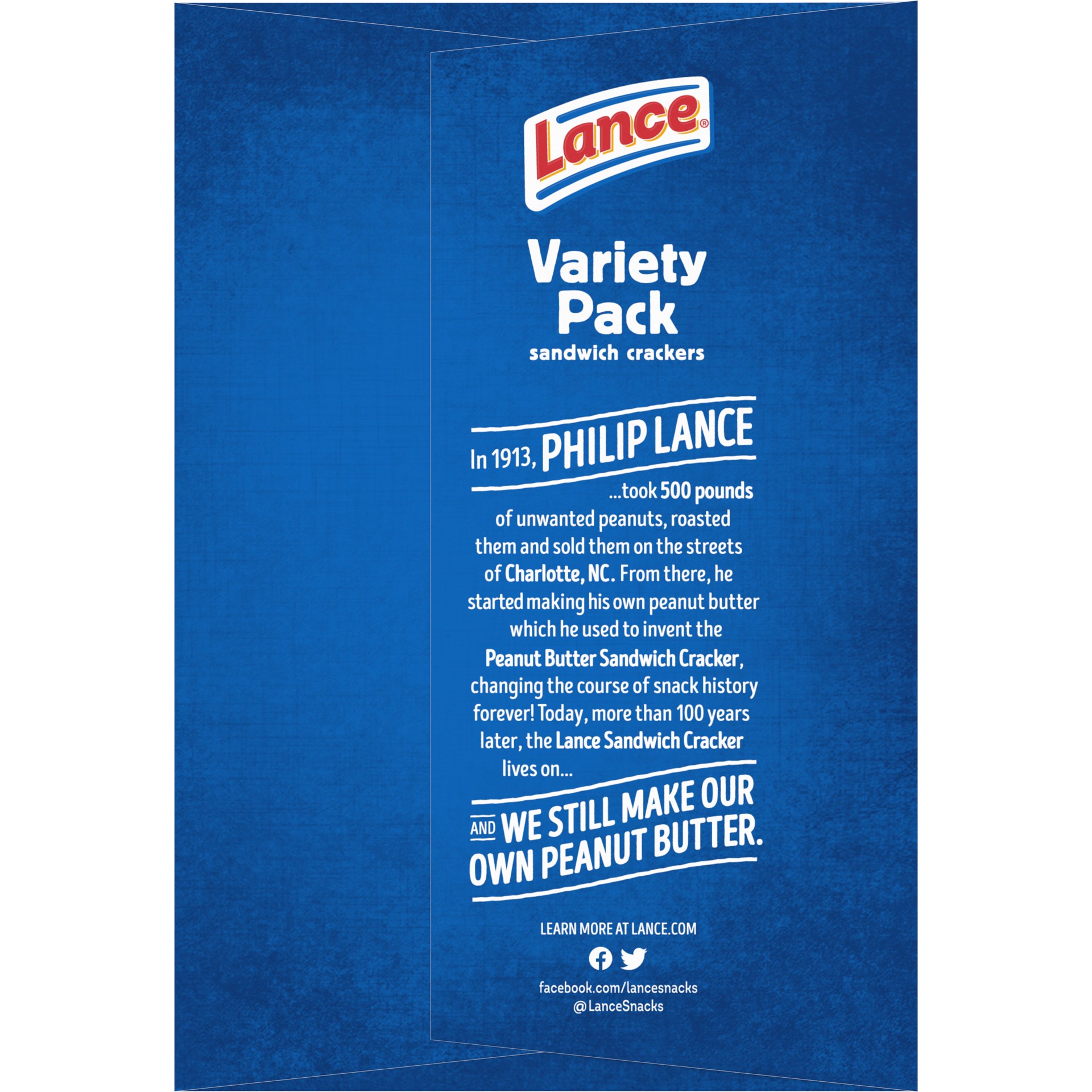 Lance snack lovers won''t be able to get enough of this sandwich cracker variety pack! All 3 flavors have delicious filling between two crispy baked crackers for satisfying goodness. You get a total o…