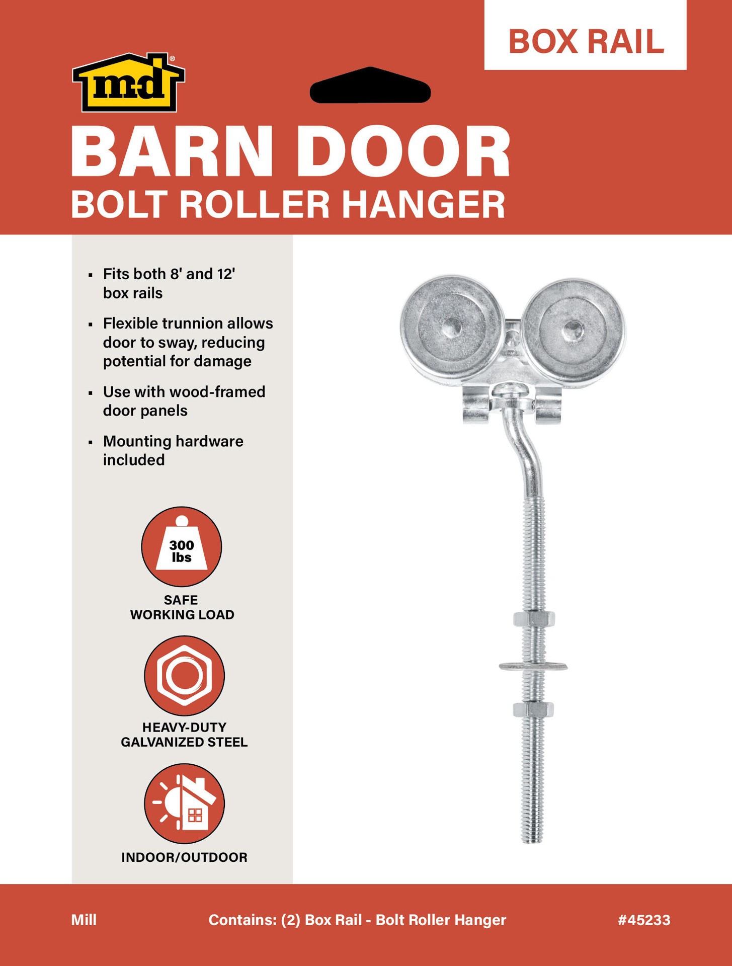 M-D Mill Indoor/Outdoor Single Barn door hanger