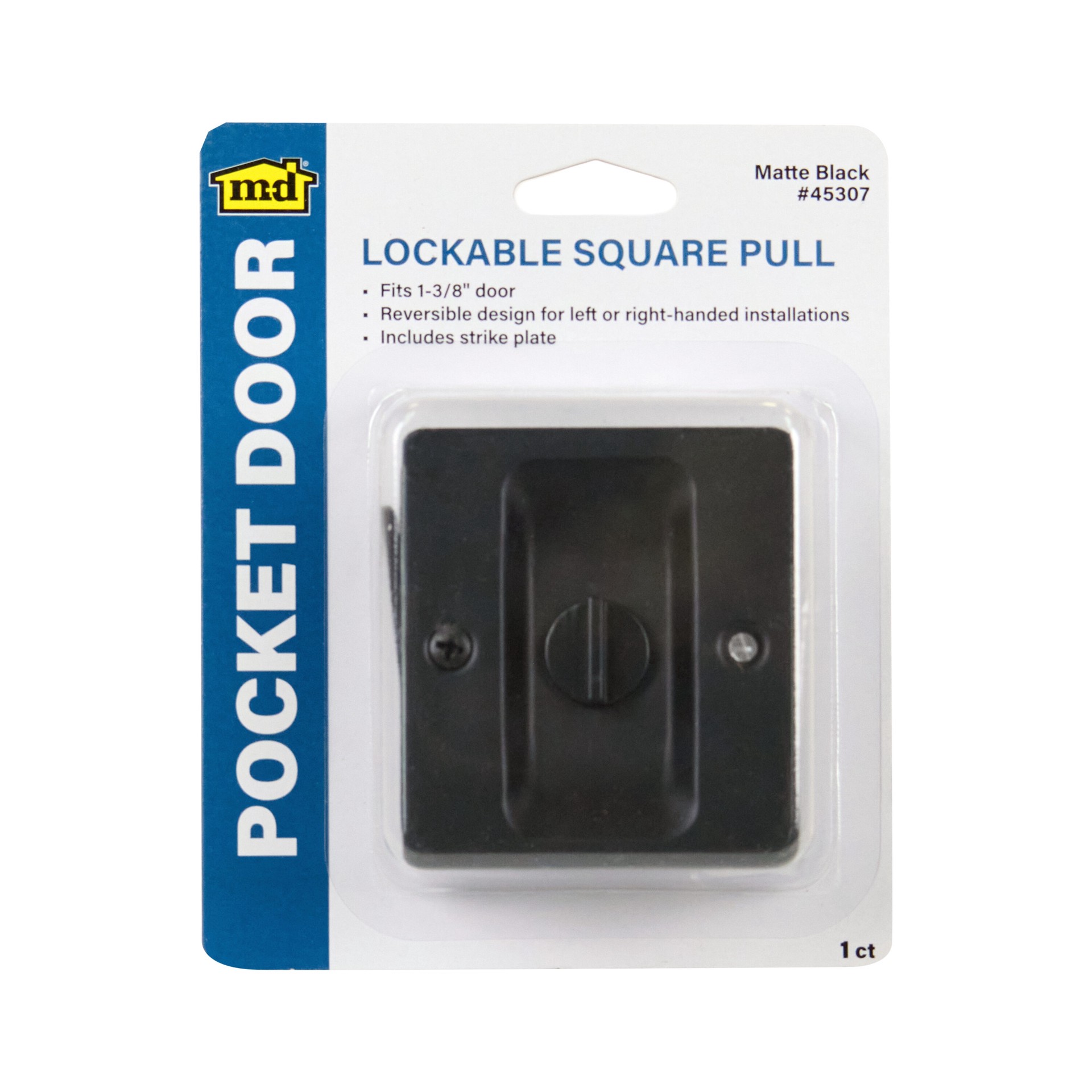 Privacy pocket pull for left or right-hand install. Steel construction. 2-3/4" tall, fits 1-3/8" and 1-3/4" thick doors. Steel. Matte Black finish. Includes all needed hardware for mounting. Mortise n…