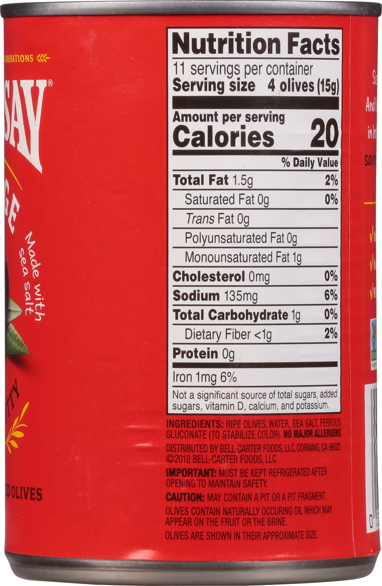 Ripe Olives, Water, Sea Salt, Ferrous Gluconate (to Stabilize Color).