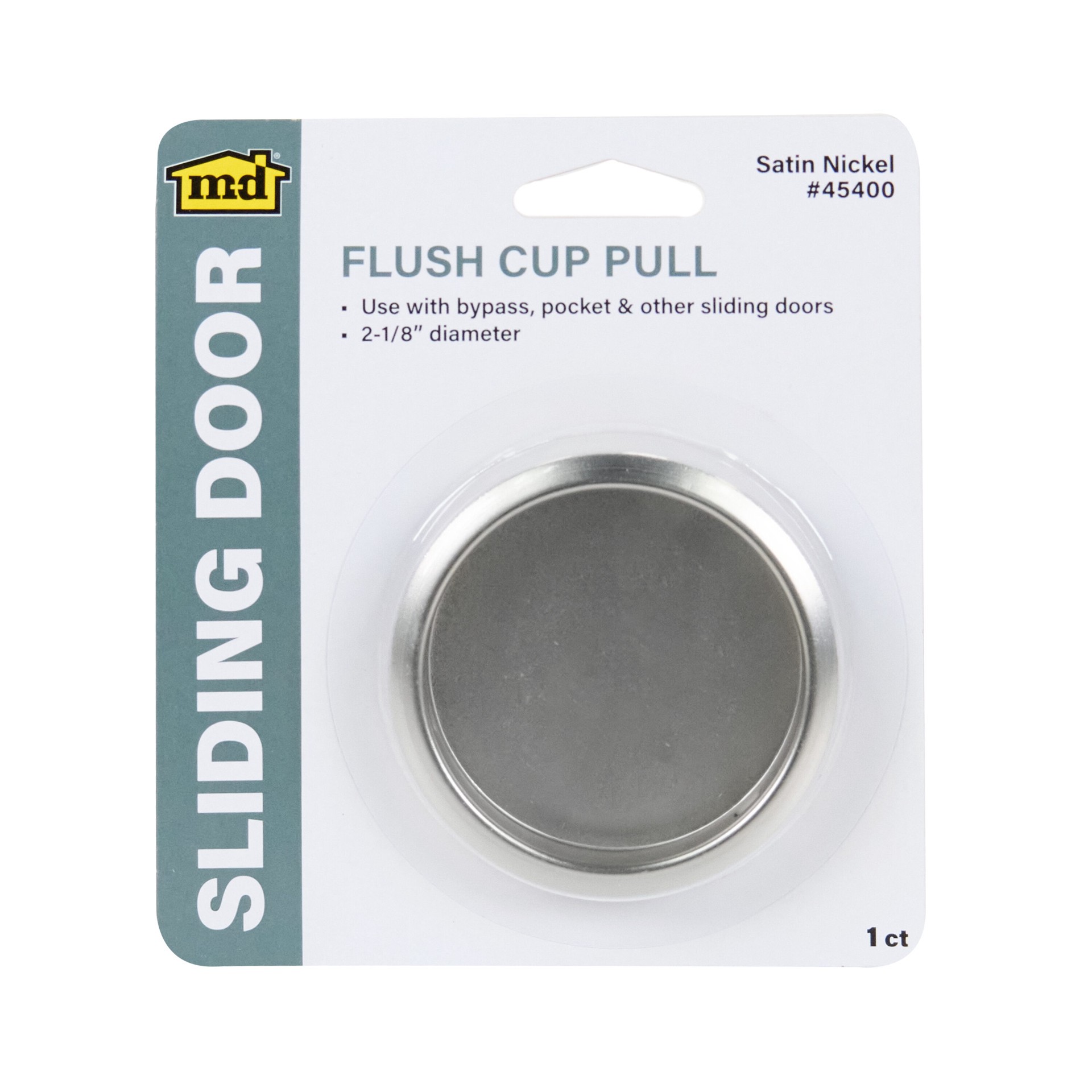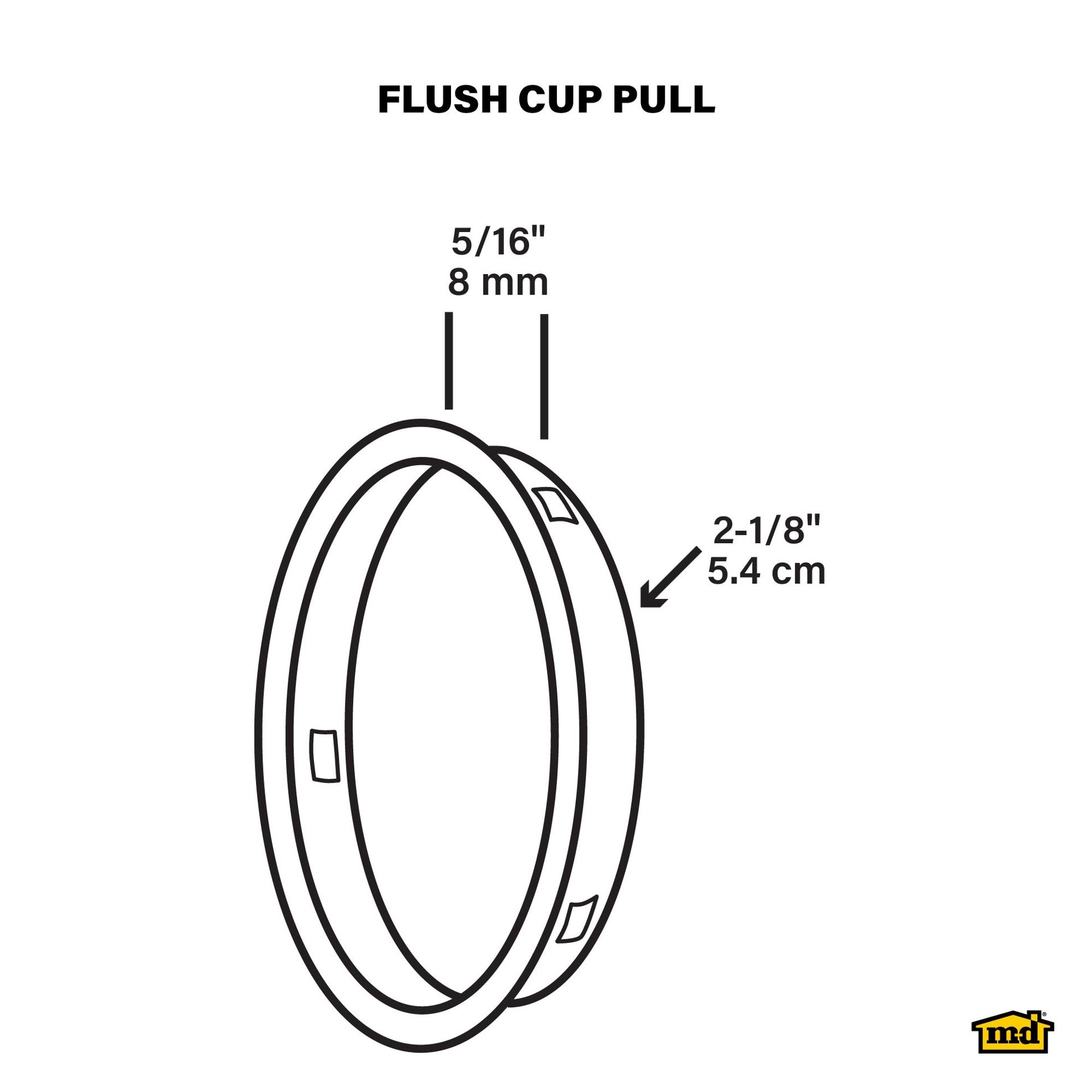 Use this flush cup pull on any sliding door application. Steel plated for long lasting durability. Fits in standard 2-1/8" door knob opening. Steel. Satin Nickel finish. Fits standard 2-1/8" door open…
