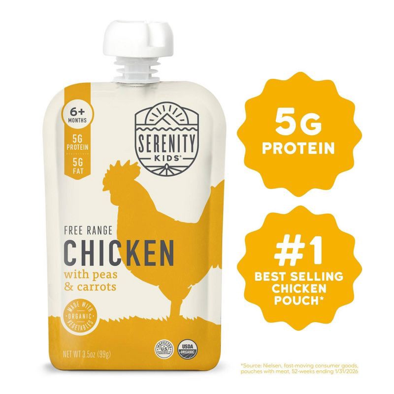 Serenity Kids Free Range Chicken with Organic Peas & Carrots Baby Food Pouch - 3.5oz: Gluten-Free, Dairy-Free, High Protein