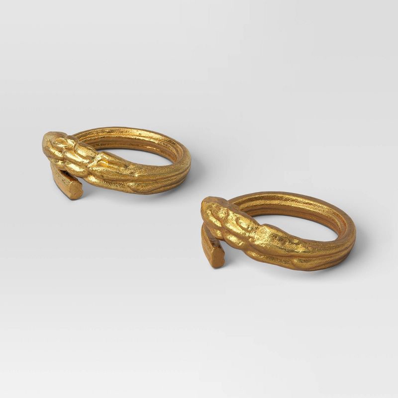Elevate your dining setup with these 2-Pack Napkin Rings from Threshold™. Designed in a gold-tone finish, these rings have a textured finish at one end to enhance the visual interest. Crafted from met…