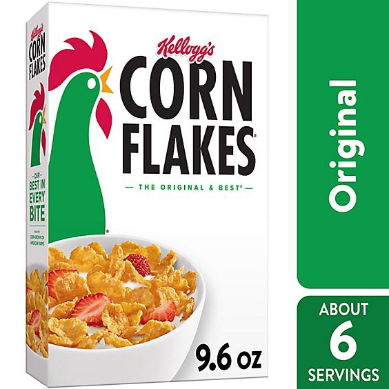 Greet your morning with Kellogg''s Corn Flakes cereal, a healthy, delicious breakfast cereal that helps you start the day right. Includes 1, 9.6-ounce box of this classic family-favorite cereal, perfe…