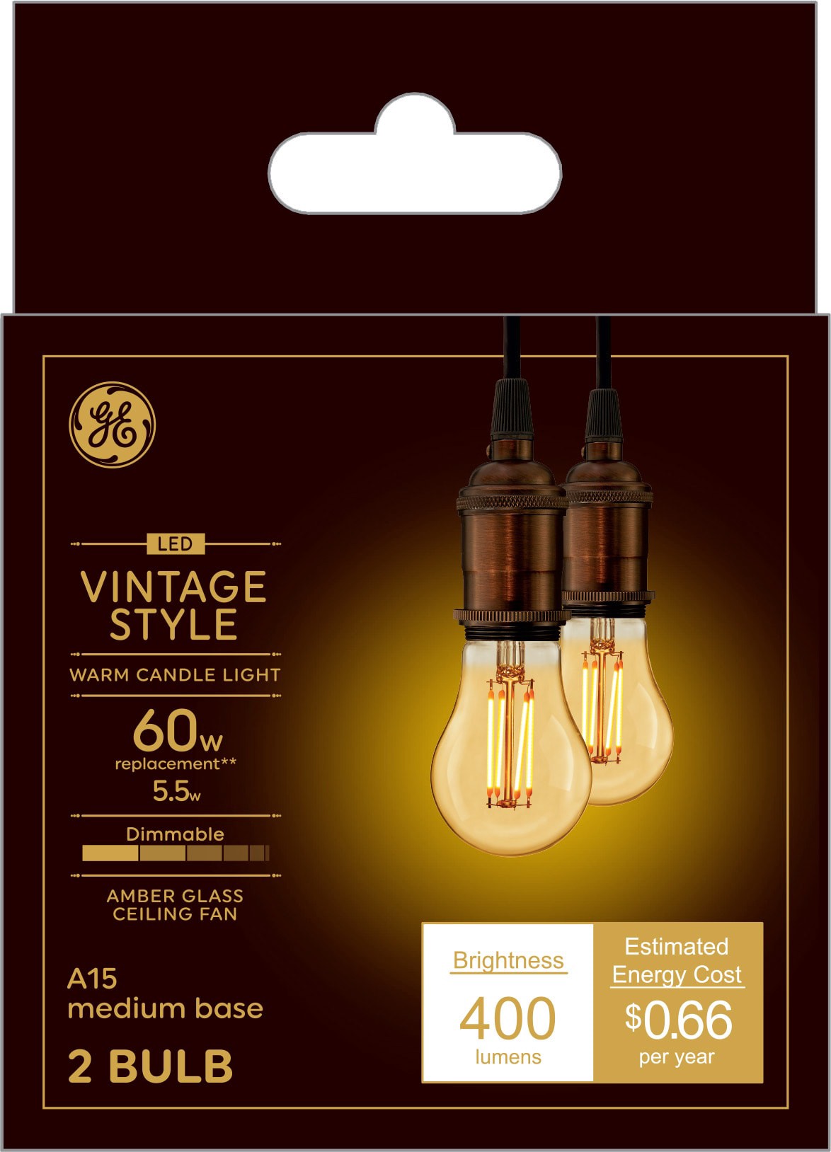 GE Vintage 60 -Watt EQ A15 Warm candlelight Medium screw base E26 Dimmable LED Decorative Light Bulb 2 -Pack
