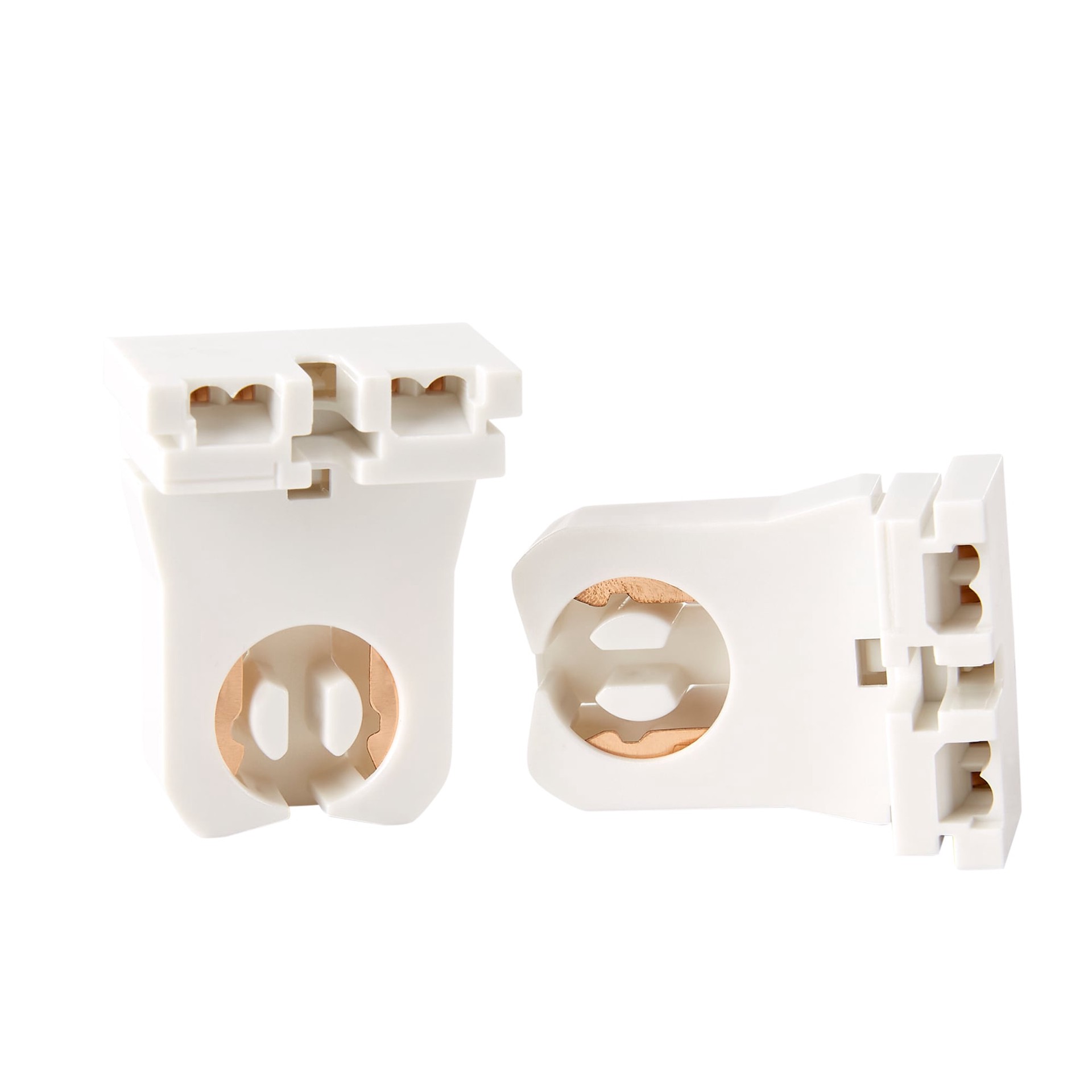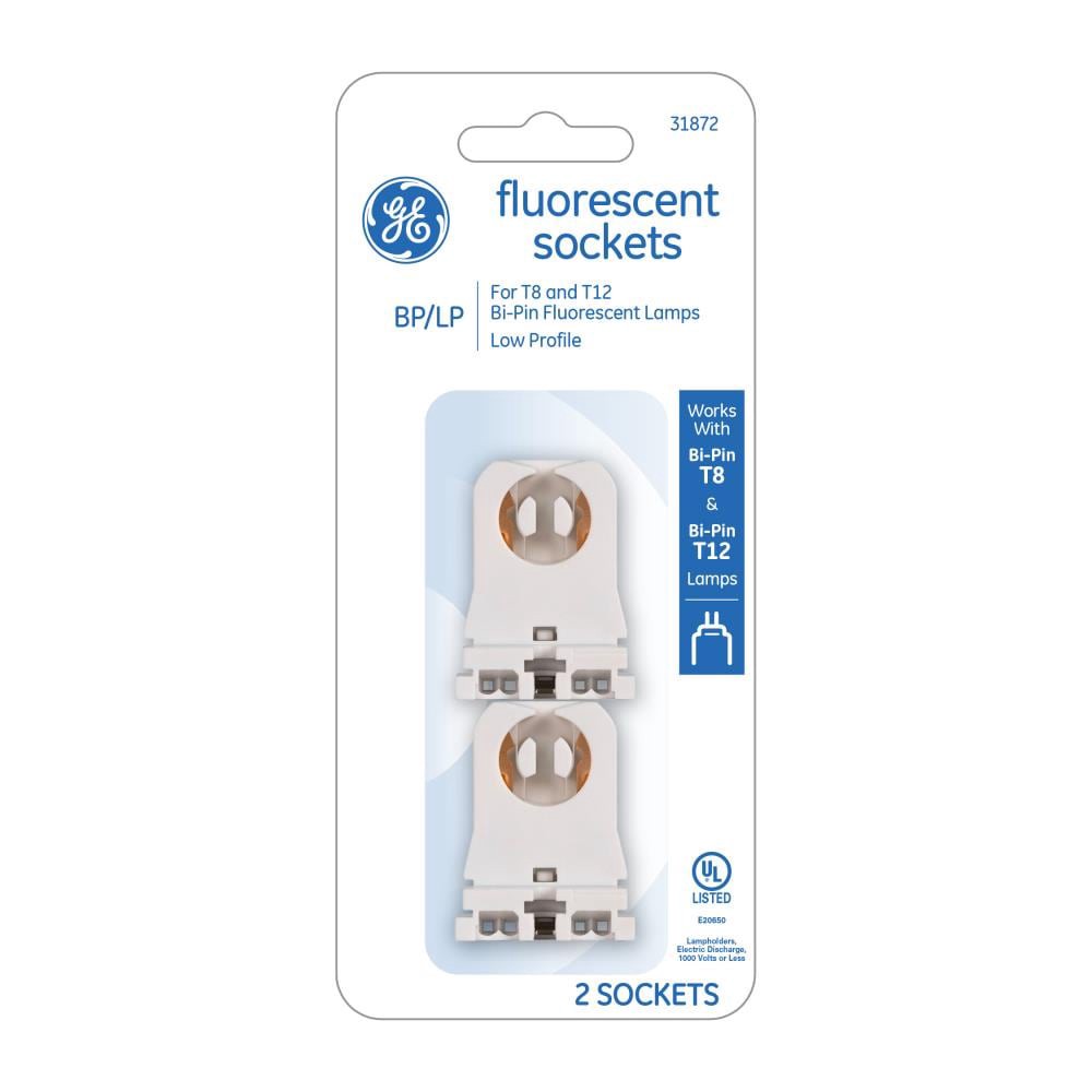 Works with T8 (1-inch diameter) and T12 (1-1/2 inch diameter) with medium bi-pin base type (G13). White color. Low profile. Technical description: BP/LP. 2 sockets per package. UL listed. For use in f…