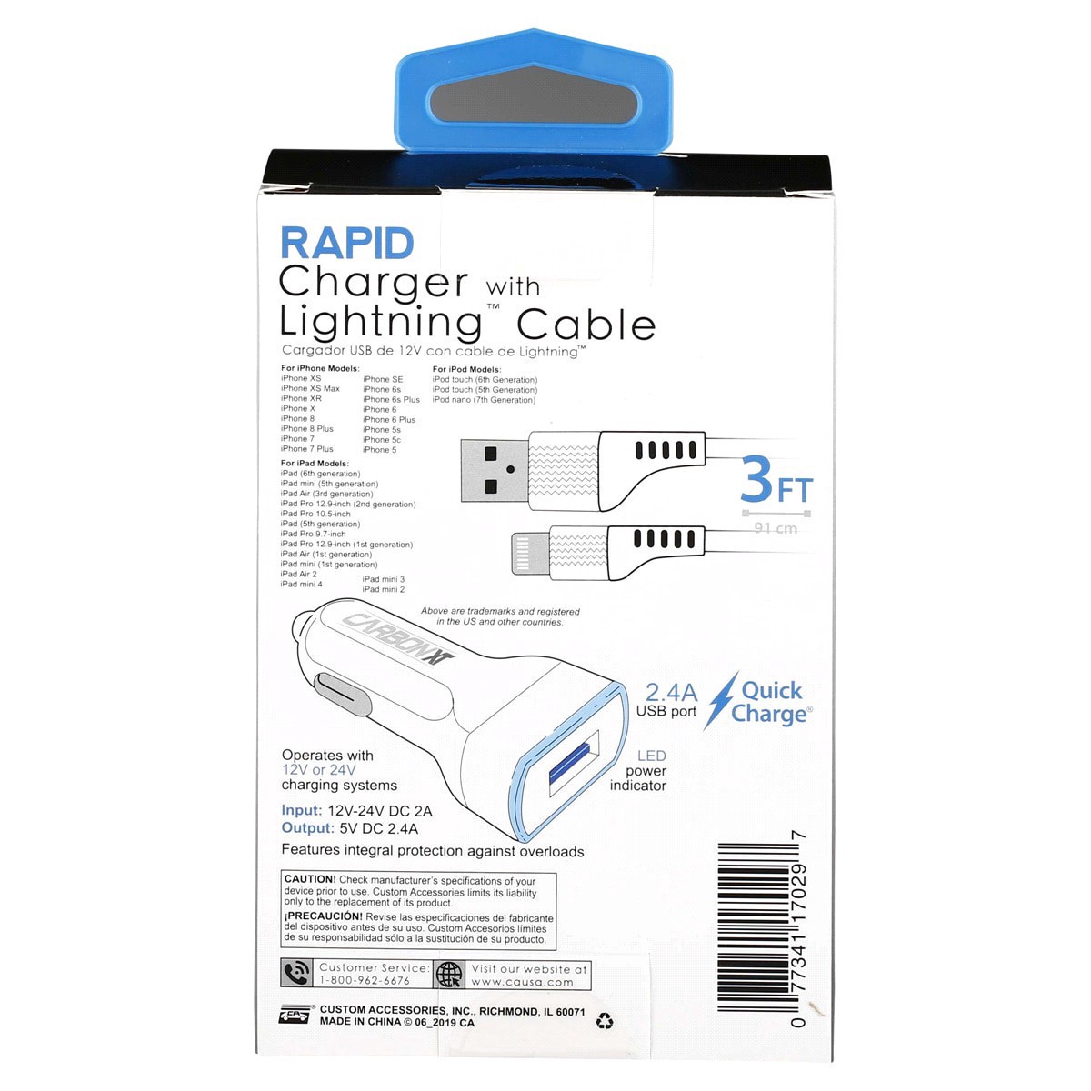 Custom Accessories CARBON XT 2.4A Single USB Charger With 3' Lightning Cable