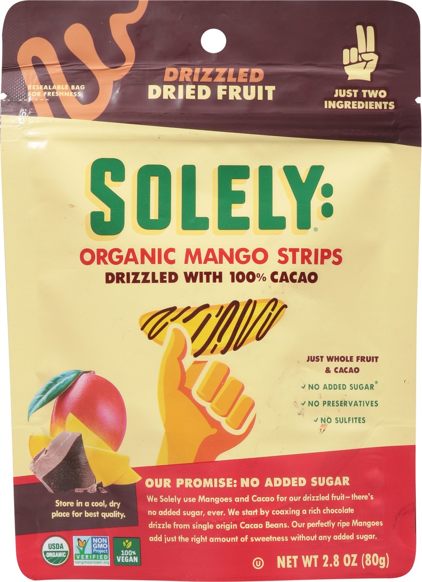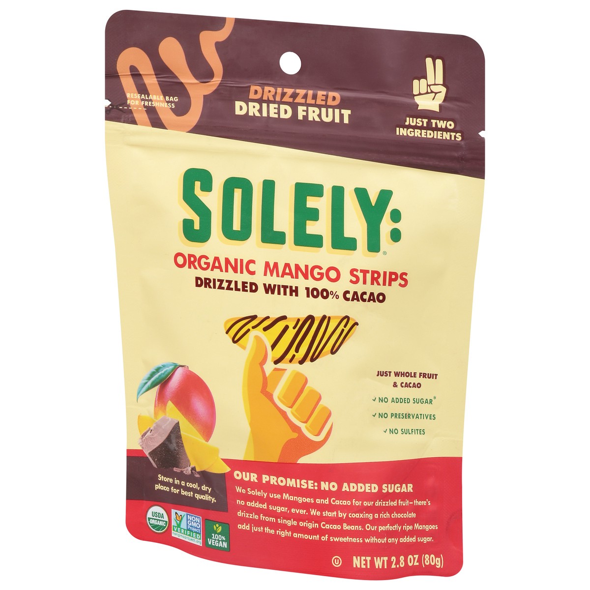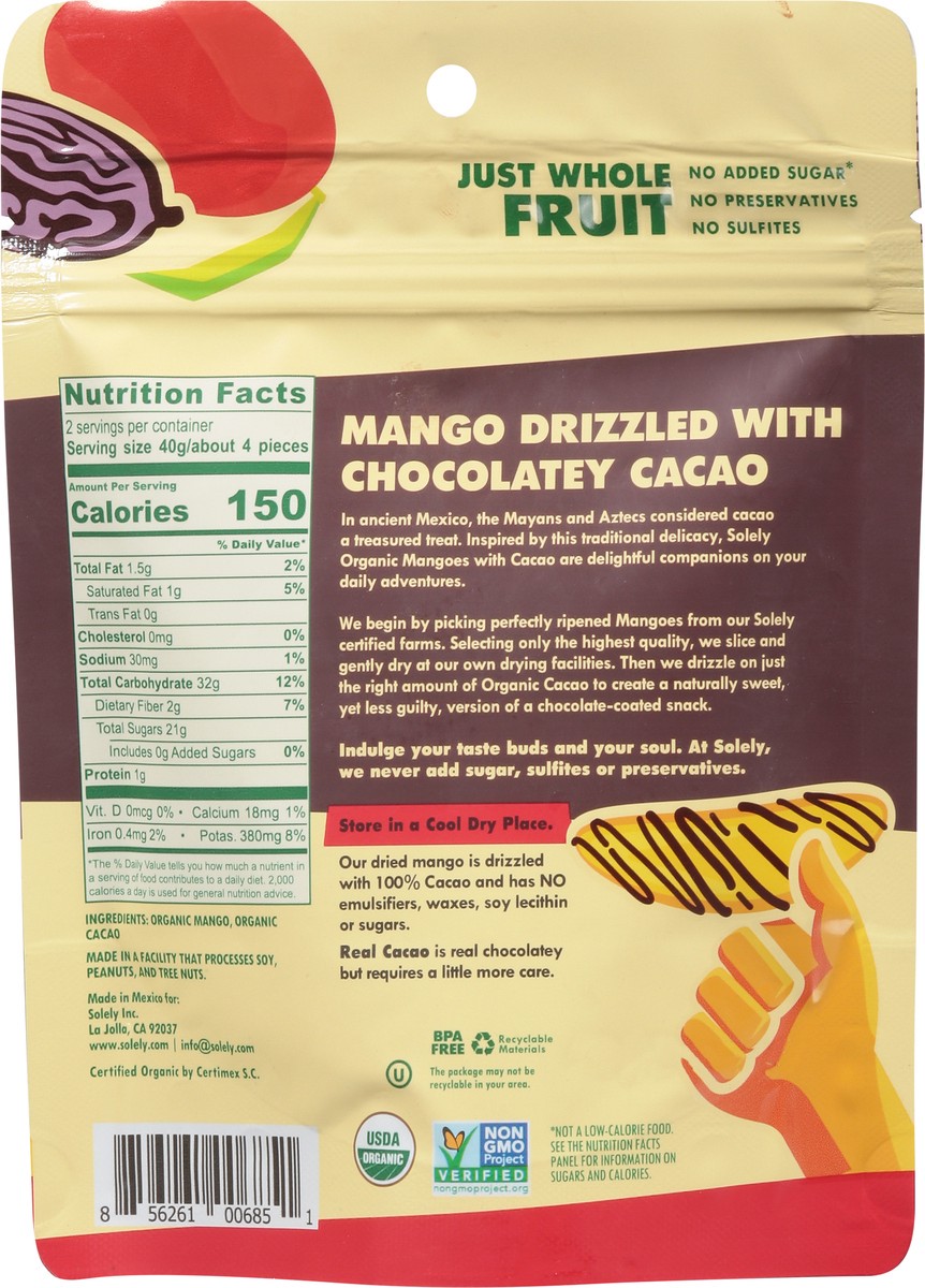 Just whole fruit & cacao. Mango Drizzled with Chocolatey Cacao: In ancient Mexico, the Mayans and Aztecs considered cacao a treasured treat. Inspired by this traditional delicacy, Solely organic mango…