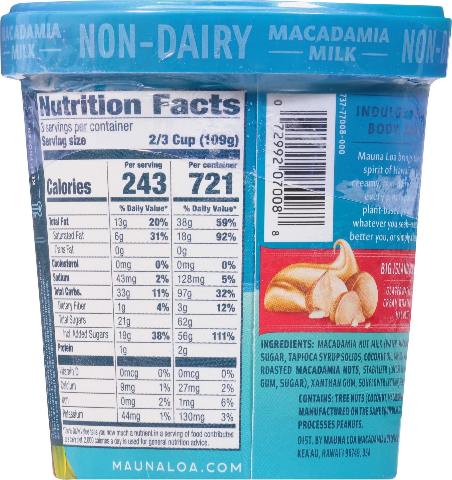 Macadamia powered paradise. Indulge your mind, body, and spirit. Mauna Loa brings the energy and spirit of Hawaii to you. With a creamy, non-dairy macadamia base, every pint is packed with the plant-b…