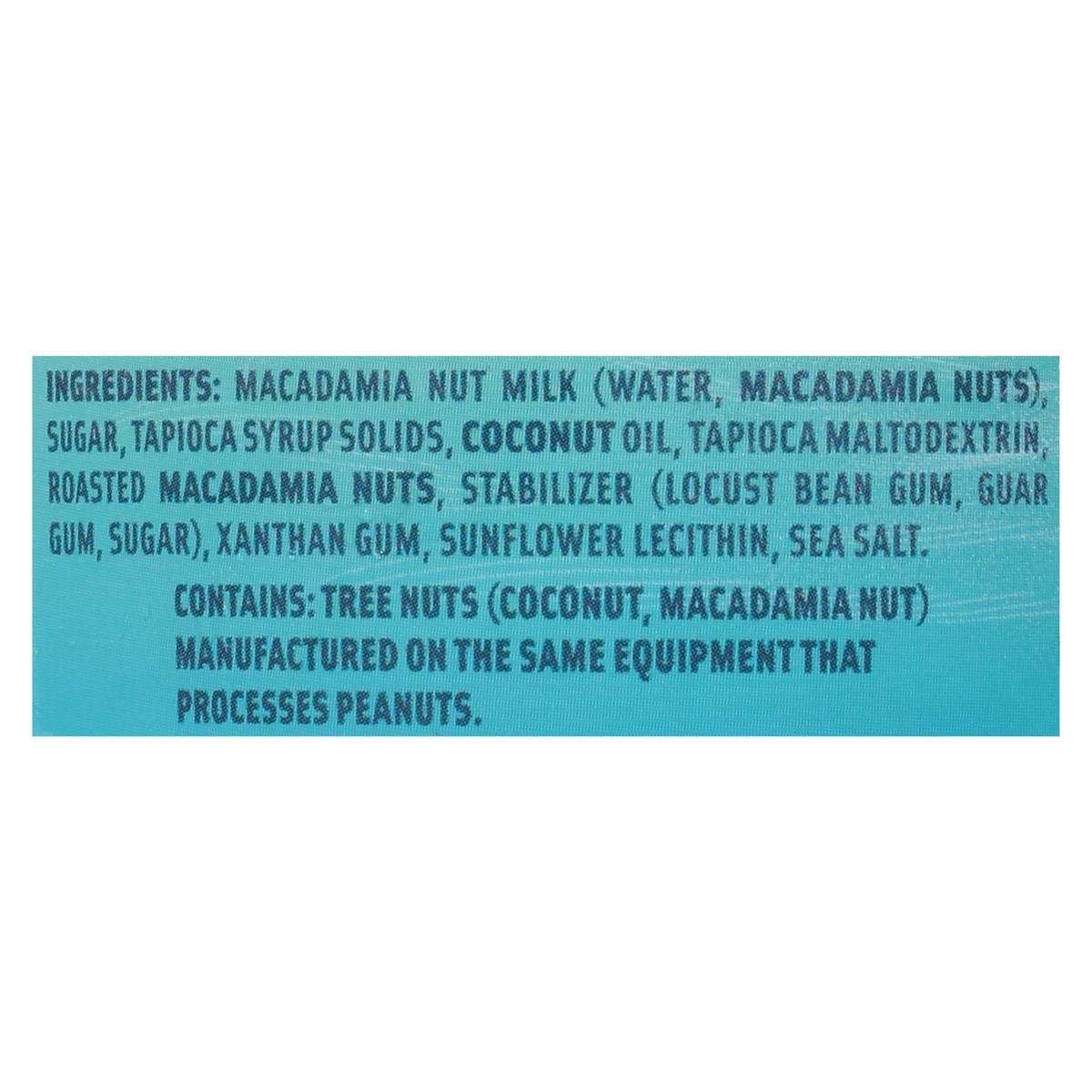Macadamia Nut Milk (Water, Macadamia Nuts) Sugar, Tapioca Syrup Solids, Coconut Oil, Tapioca Maltodextrin Roasted Macadamia Nuts, Stabilizer (Locust Bean Gum, Guar Gum, Sugar), Xanthan Gum, Sunflower …