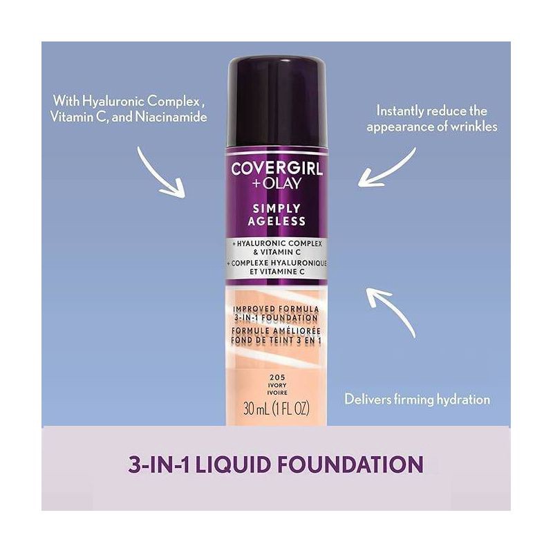 COVERGIRL + Olay Simply Ageless 3-in-1 Liquid Foundation with Hyaluronic Complex + Vitamin C - 232 Nude Beige - 1 fl oz