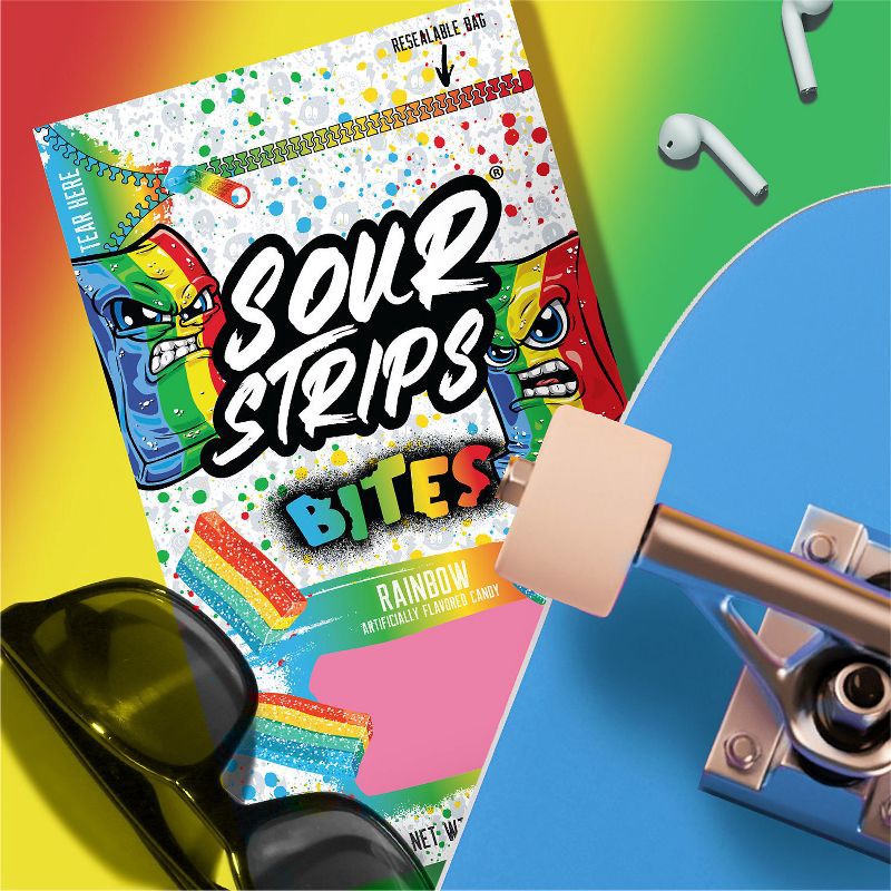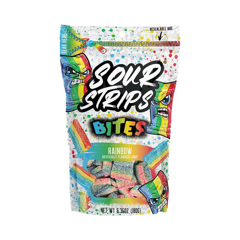 - Contains one (1) 6.35-ounce bag of SOUR STRIPS Bites Rainbow Flavored Chewy Candy