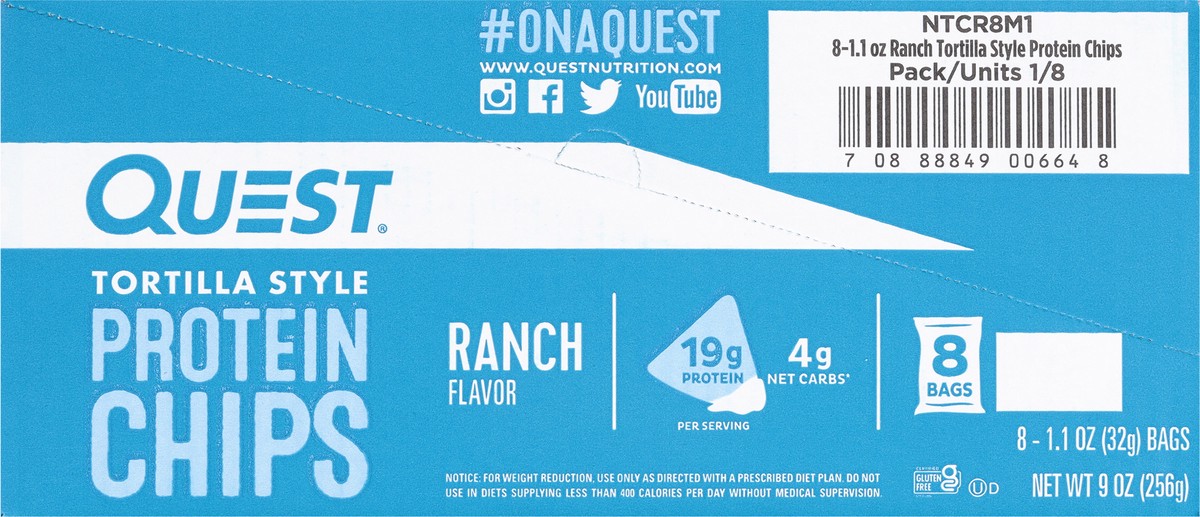 Quest Tortilla Style Ranch Flavor Protein Chips 8 - 1.1 oz Bags