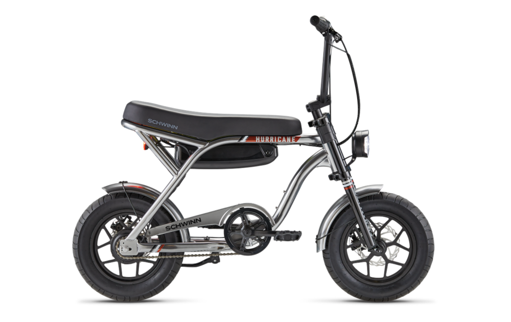 The Schwinn Hurricane is an e-bike that's all about fast-moving fun. The moto-inspired frame features stylish touches like solid mag wheels and a dual-crown fork, perfect for making an impression. The…