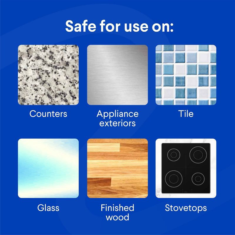- BLEACH FREE CLEANER: This Clorox All Purpose Cleaner is safe to use on kitchen counters, stovetops, appliance exteriors, finished wood, tile and glass