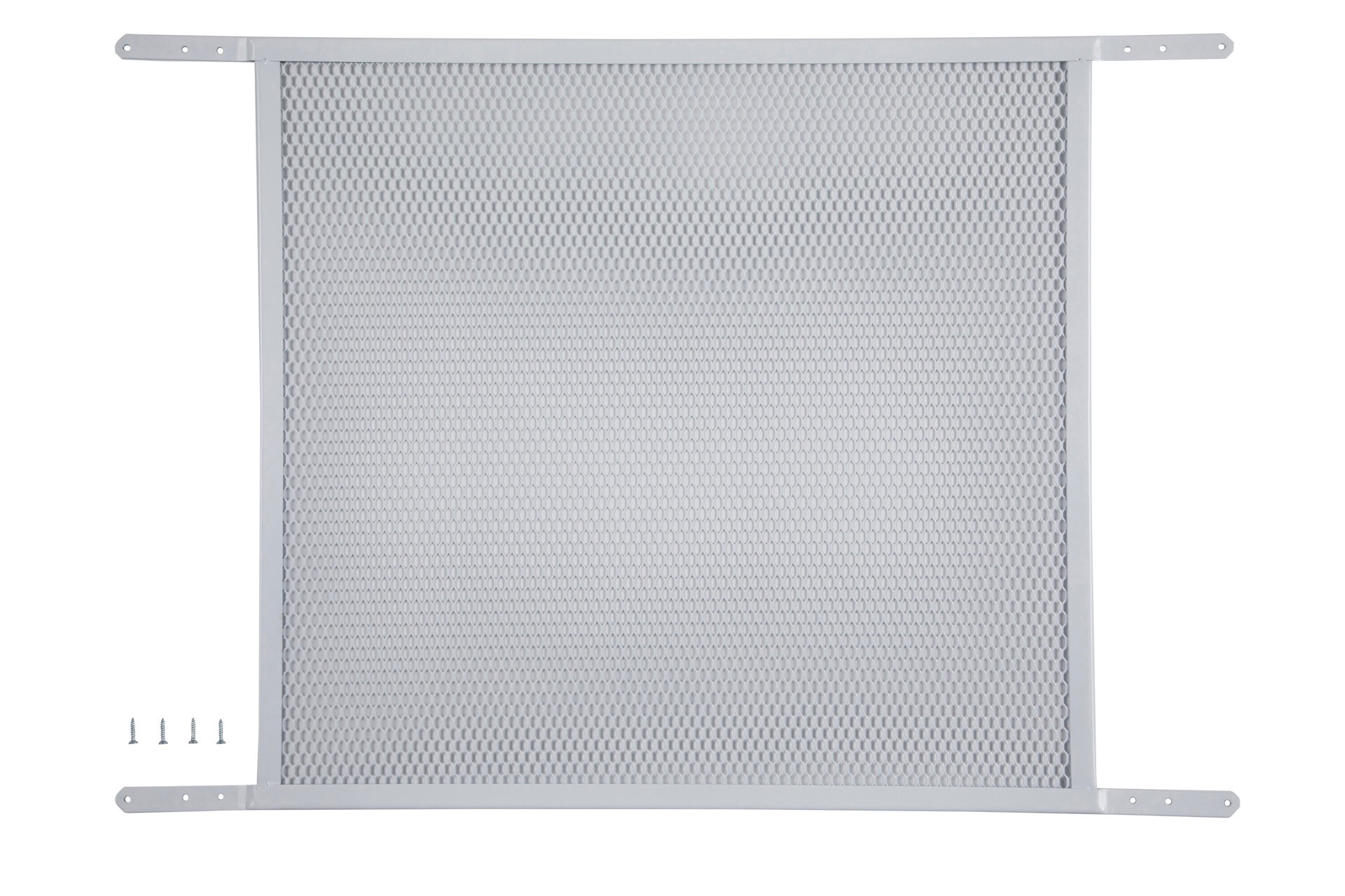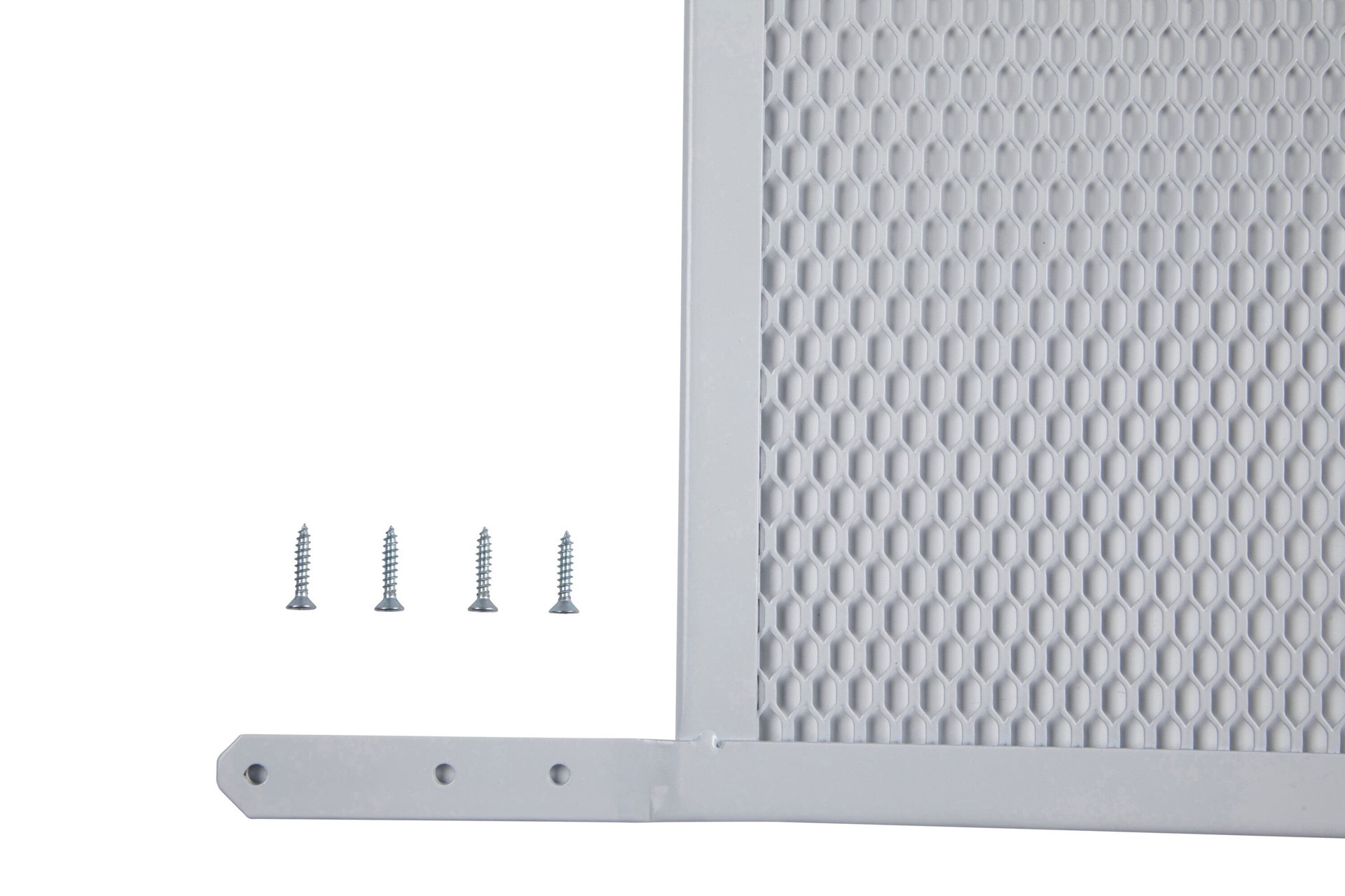 Made of steel. Used to protect screen doors. For indoor and outdoor use. White. Screw-on (screws included). For indoor and outdoor use. Cut to desired length with hacksaw.