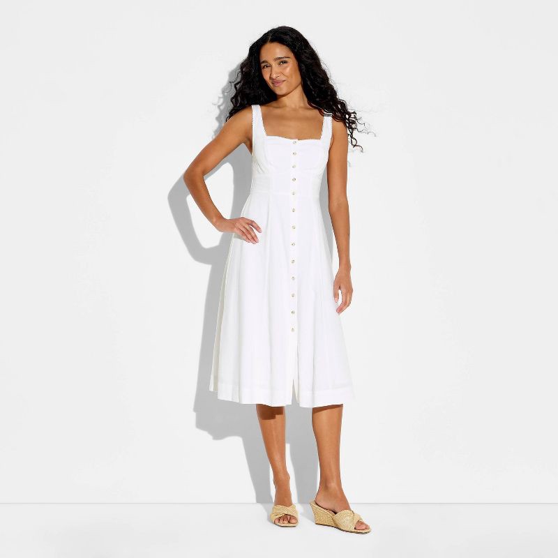 Sleeveless midi A-line dress from Wild Fable™ with full button-front detailing. Crafted from lightweight rayon-linen blend fabric for comfortable wear. Features a square neckline with wide shoulders s…