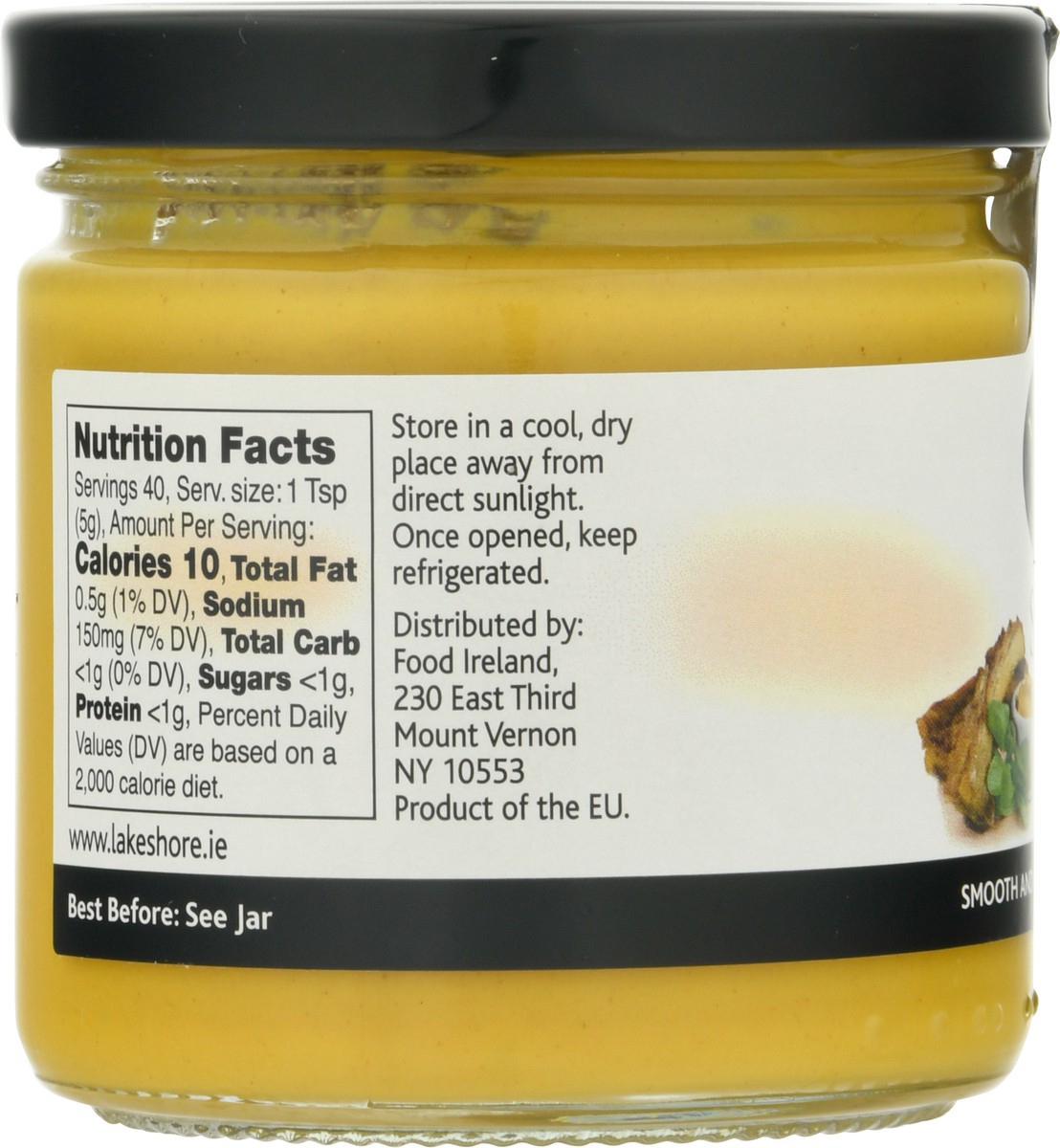 Smooth and strong yellow mustard. (Not bioengineered) non GMO. www.lakeshore.ie. Product of the EU.