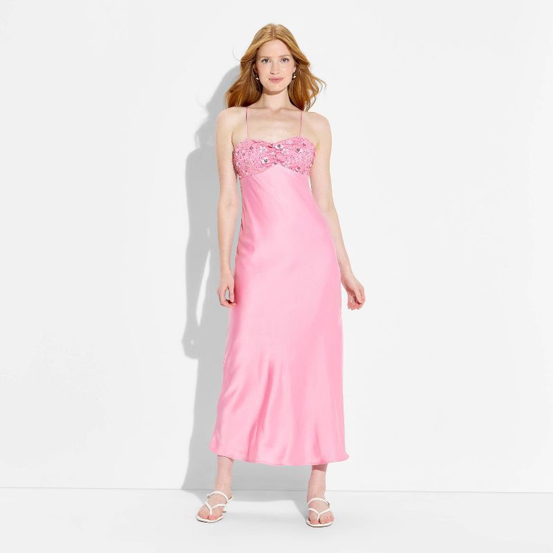 Women's Maxi Sequin Satin Empire Waist Dress - Wild Fable™ Rose Pink XS