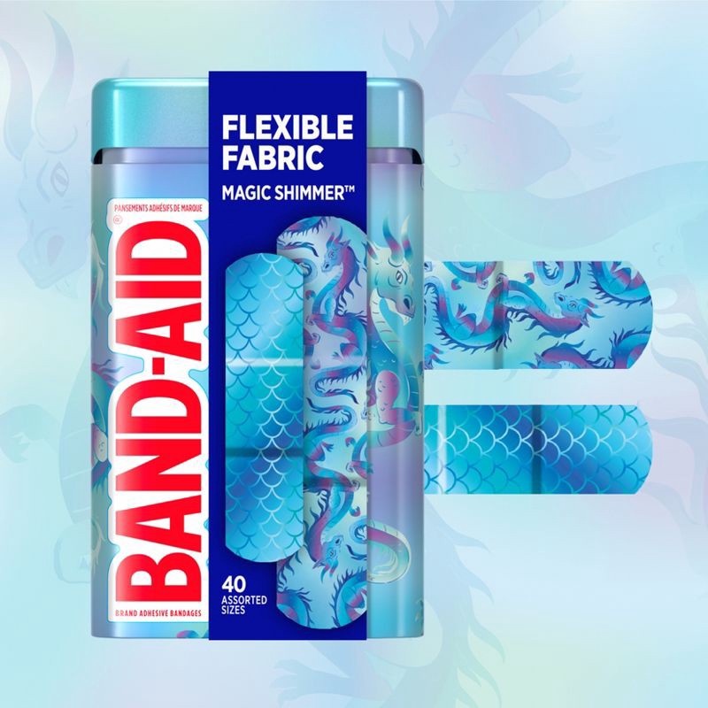 Band-Aid Brand Flexible Fabric Adhesive Bandages - Magic Shimmer Dragon Design - Assorted Sizes - 40ct