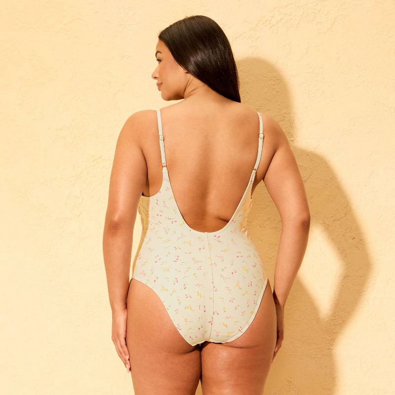Get effortless beach style with this Ditsy Floral Plunge Extra-High-Leg Cheeky One-Piece Swimsuit from Shade & Shore™. This pull-on swimsuit is adorned with an allover multicolor ditsy floral pattern …