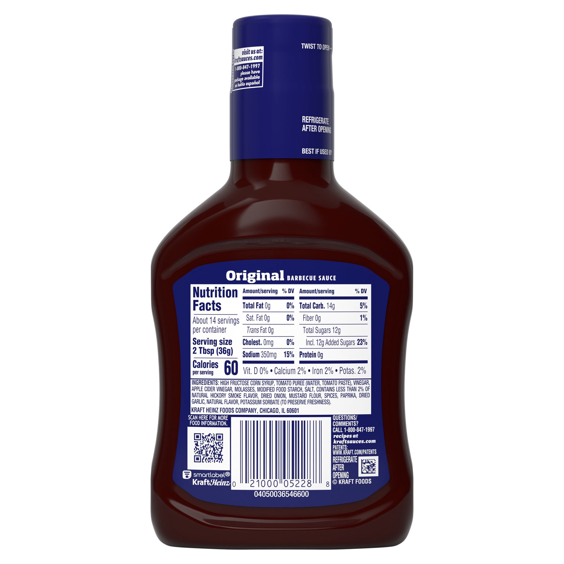 Kraft Original Slow-Simmered Barbecue Sauce & Dip adds bold, robust barbecue flavor to almost anything. Bursting with molasses, apple cider vinegar, spices and smoky hickory flavor, our 18 ounce resea…