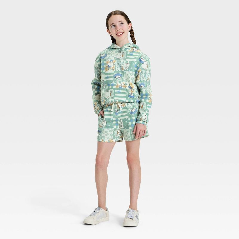 Sanrio Girls' Hello Kitty and Friends Patchwork Fleece Shorts - Light Green XS