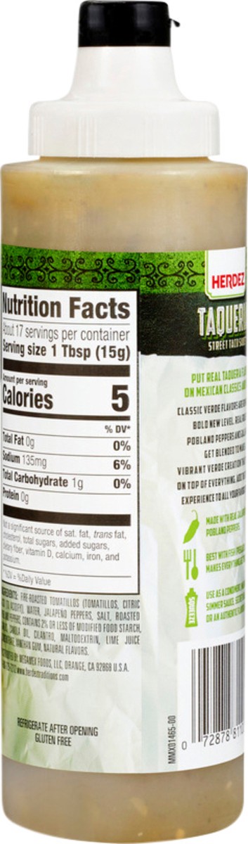 Get the authenticity of HERDEZ salsa with a taqueria twist. Made with poblano and jalapeño peppers, HERDEZ Taqueria Street Sauce Verde remixes classic verde flavors to a bold new level. One of four HE…