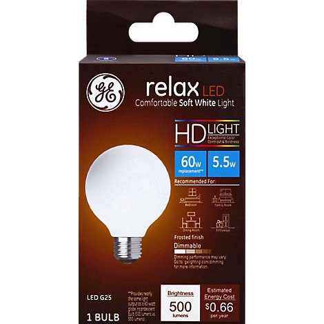GE 60w Eq Hd Relax G25 1ct Frosted - Each