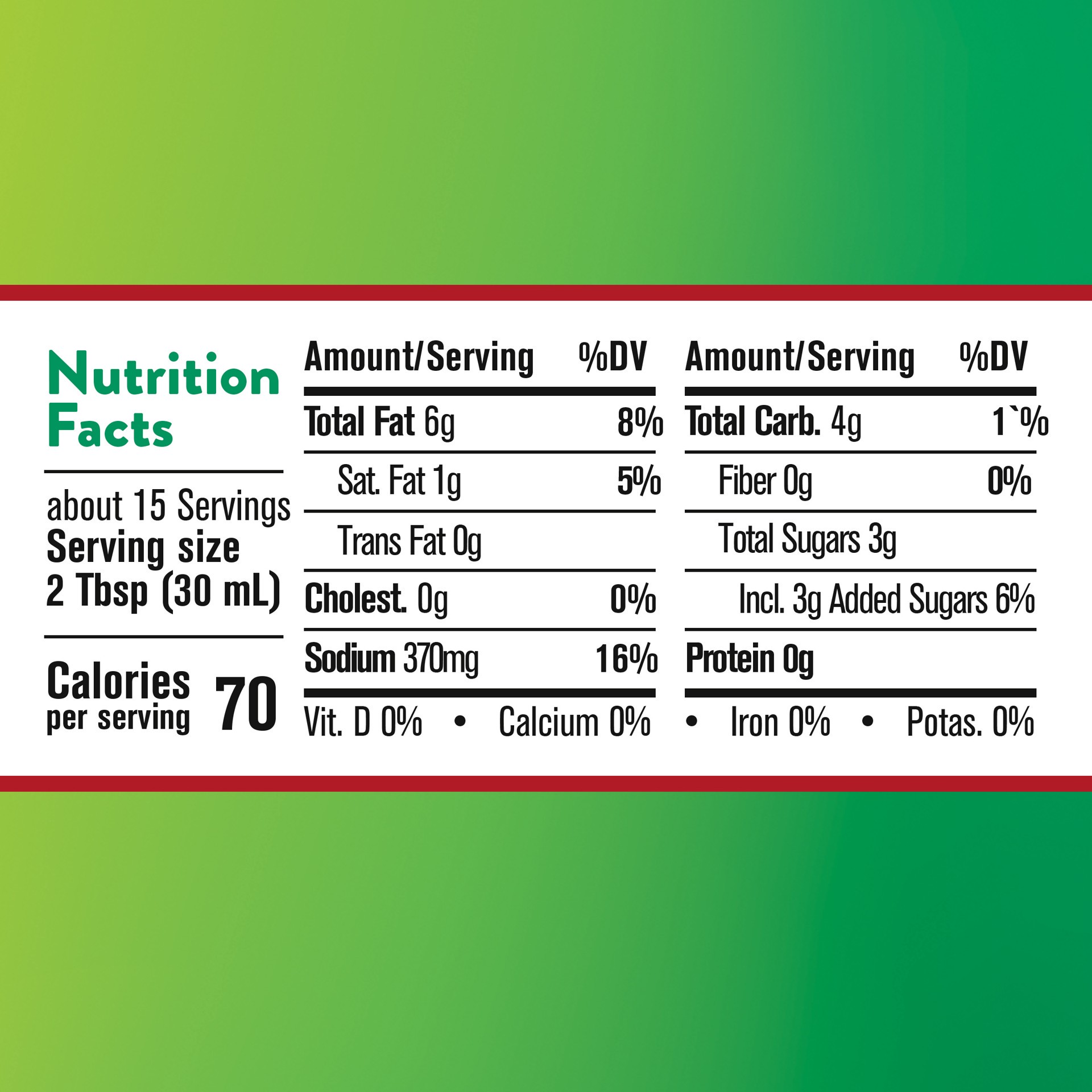 DISTILLED VINEGAR, WATER, SOYBEAN OIL, SUGAR, SALT, GARLIC*. CONTAINS 2% OR LESS OF: ONION*, RED BELL PEPPERS*, SPICE, XANTHAN GUM, YEAST EXTRACT, ROSEMARY EXTRACT, NATURAL FLAVOR, LEMON JUICE CONCENT…